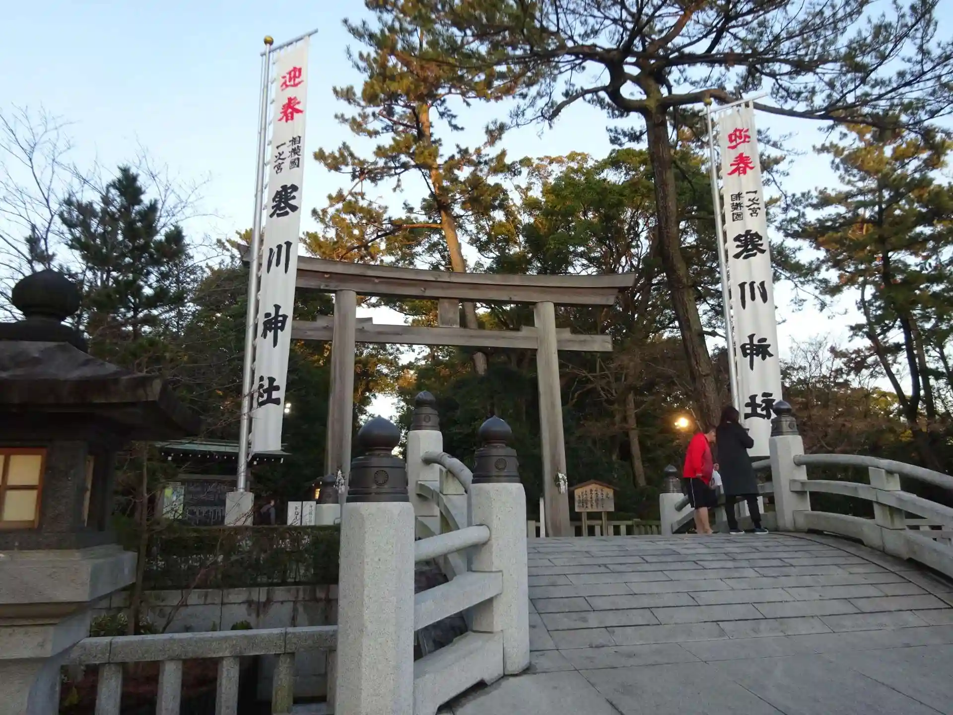 入口の鳥居と 初詣幟旗^^