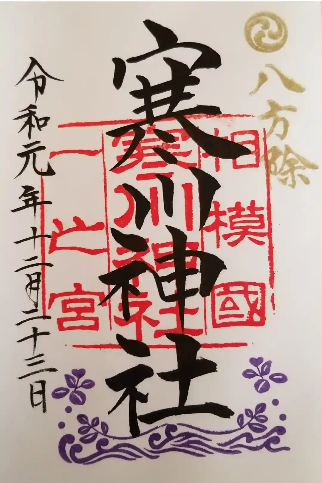 令和1年最後の御朱印は寒川神社