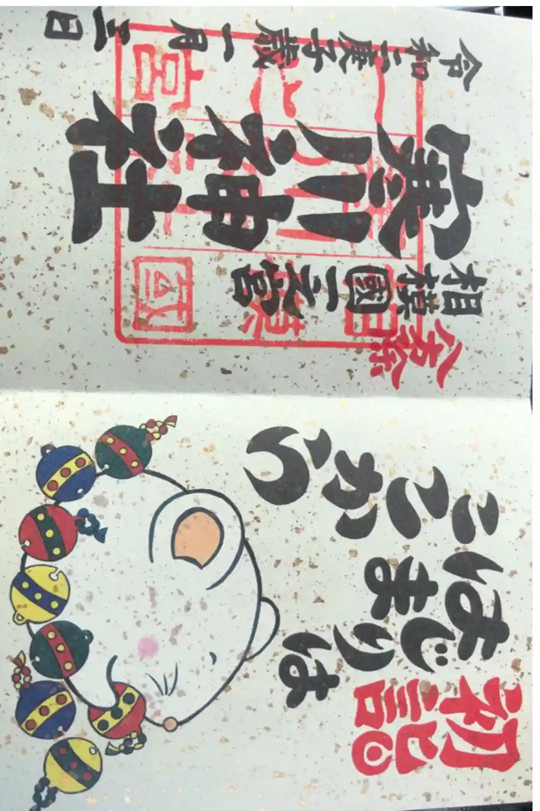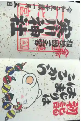1月3日18時に行きました。御朱印の場所は終わっていましたが、祈祷の受付のところでいただけました。500円納めました。1月中は書き置きのようです。可愛いねずみさんです。