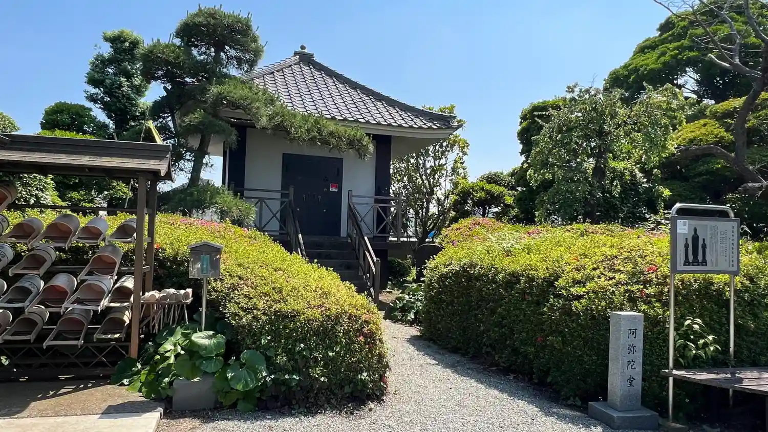境内入って左側に小ぶりの阿弥陀堂。中に阿弥陀三尊像がある。国重要文化財。公開日が決まっている。その後ろがお墓。