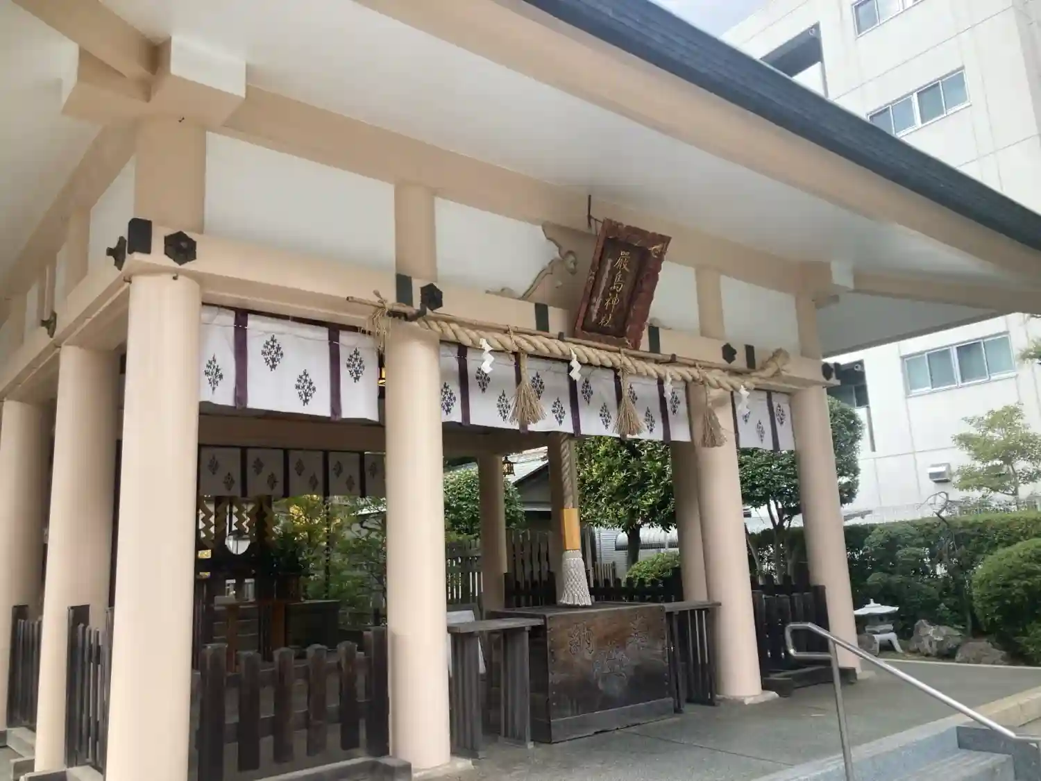 神輿殿 鉄骨耐火造 銅板葺 三坪 平成三年十月竣工。