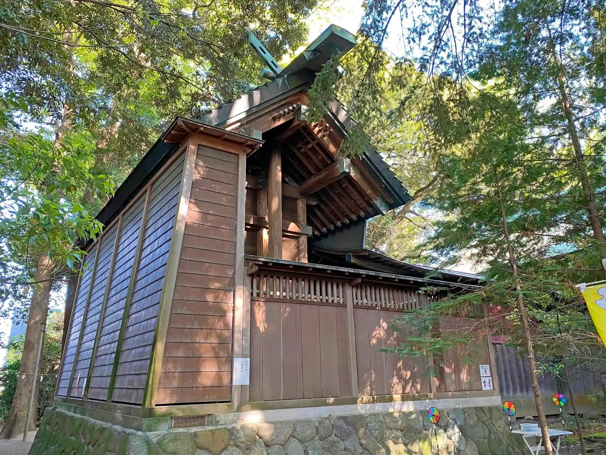 本殿の北側に、強固なガード壁。