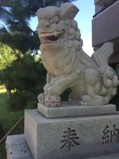 二つ目の鳥居をくぐると立派な狛犬が参拝者を見ています。二つ目の鳥居から参道は砂利が敷かれ、立派な灯篭が整然と並んでいます。