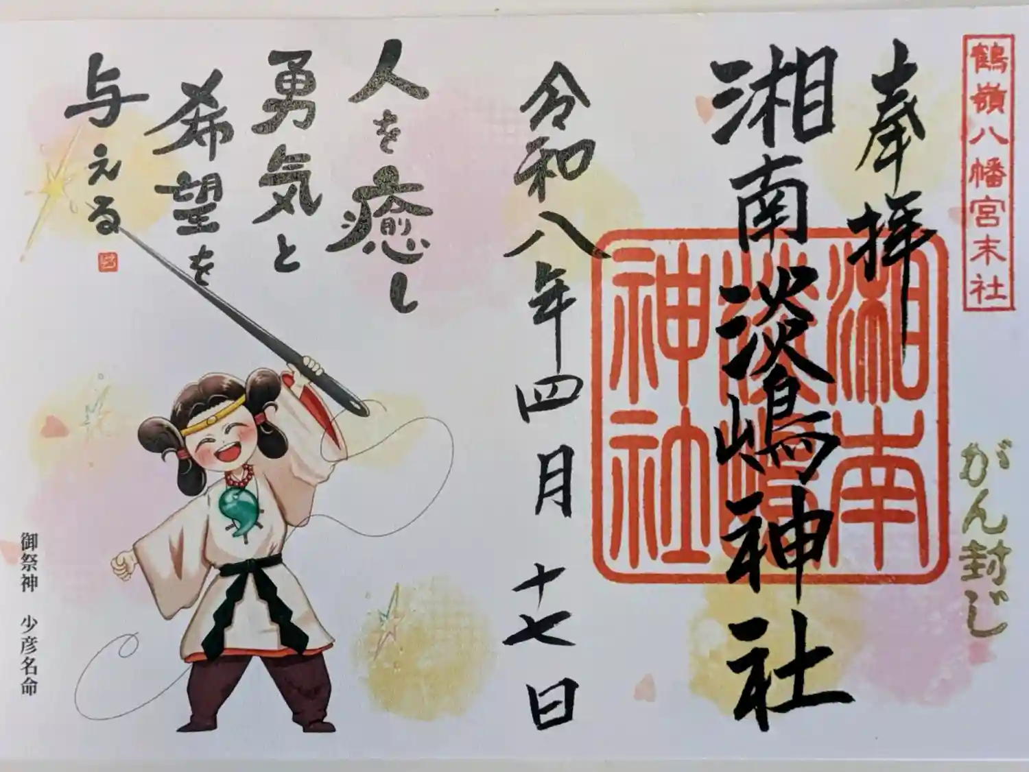 茅ヶ崎市の公認キャラクター「えぼし麻呂」の限定御朱印を、月毎に授与致します。