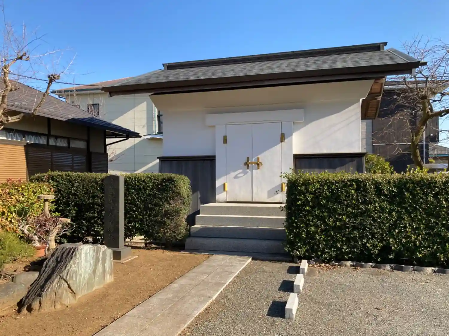 24.01.29。先の眞芳寺より徒歩5分。平塚市大神8丁目の住宅街にある日蓮宗の寺院。