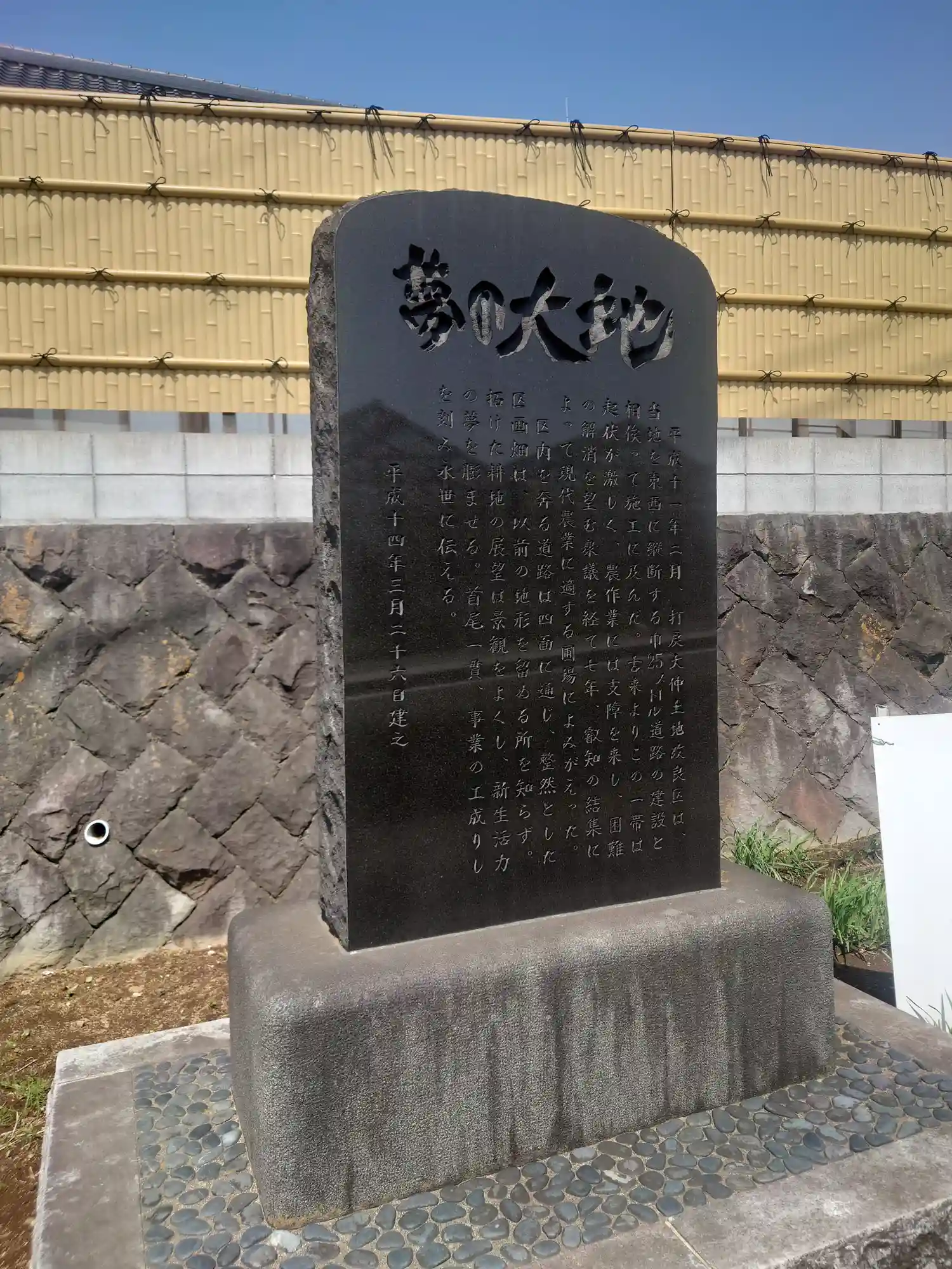 こちらは境外にありました。獺郷の子聖神社にあったものと同じく、この辺りの土地改良に関する碑です。