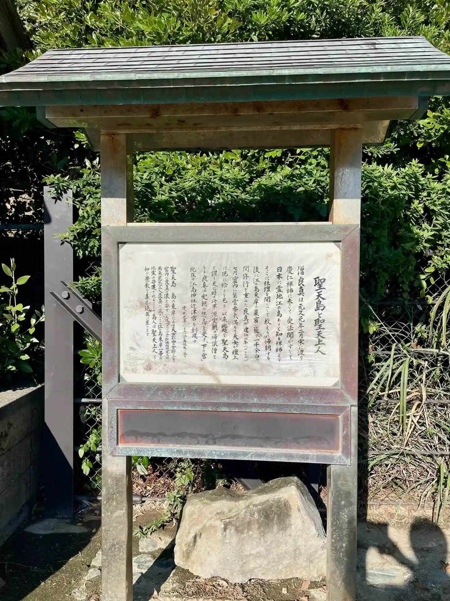 江の島にある聖天島公園の一角にある社で、源実朝の命により「江島神社辺津宮」を創建した鶴岡八幡宮の僧・良真上人が祀られている。