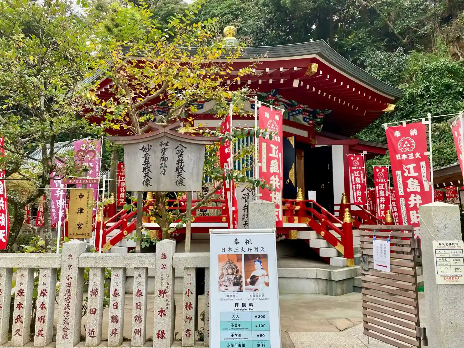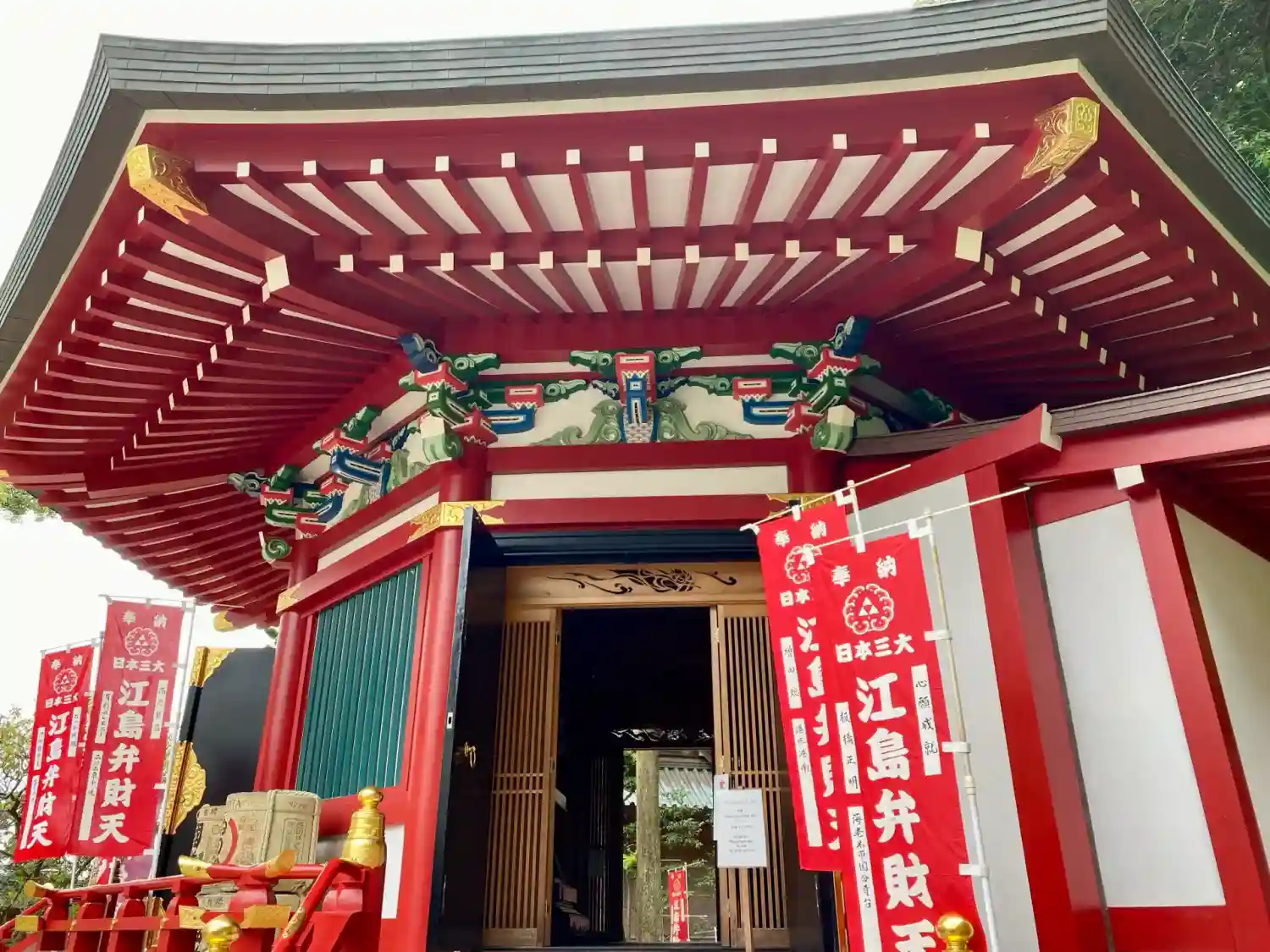 江ノ島神社の辺津宮の脇にある六角堂みたいな弁財天を祀るお堂で、日本三大弁財天の一つに数えられていま…