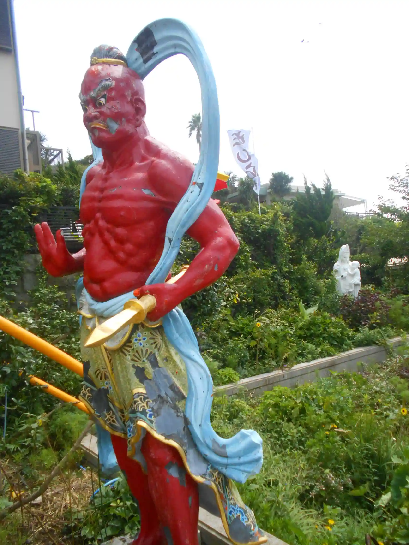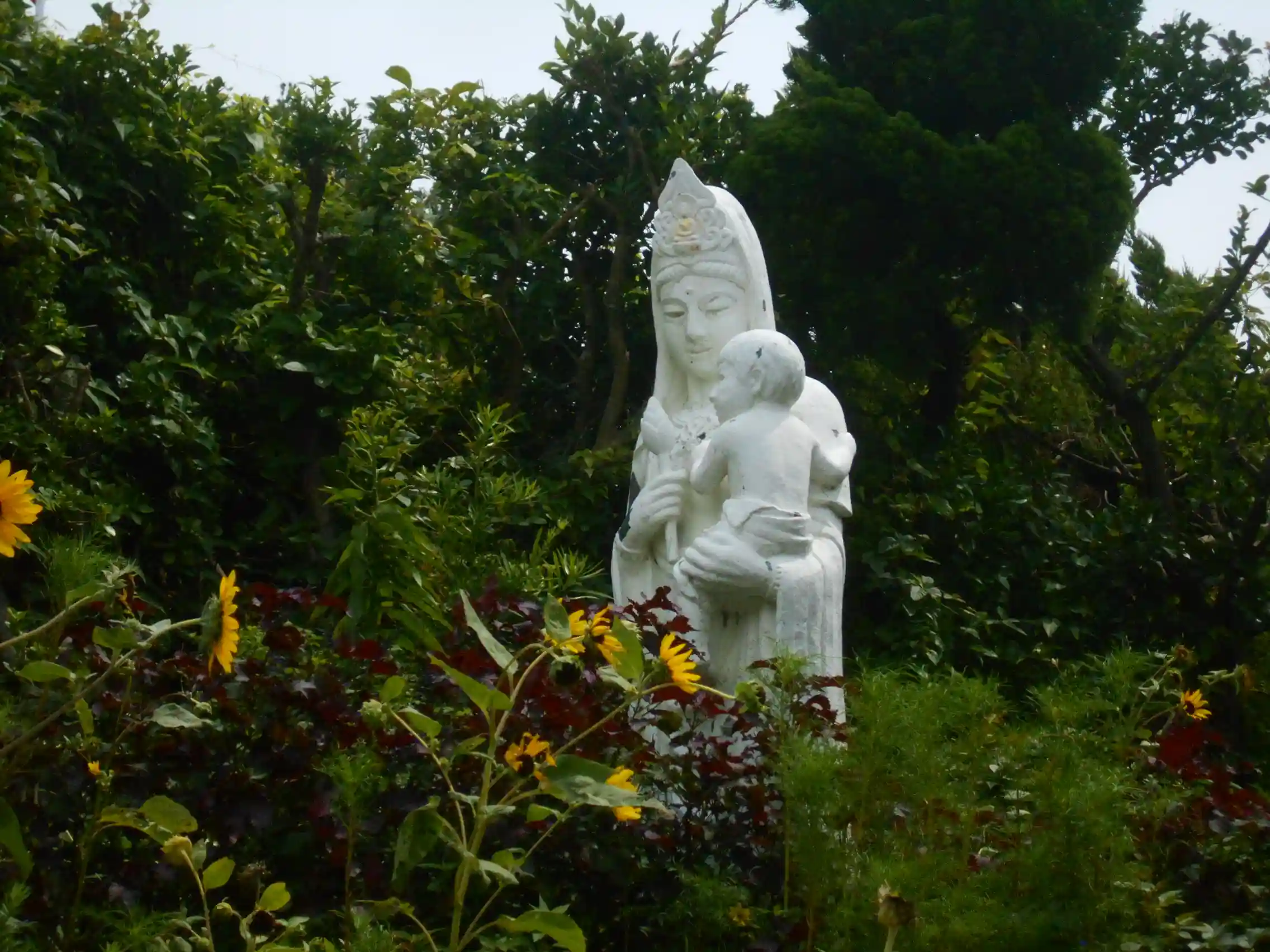 J05) 階段を降りて左上方、石造 観音菩薩像。