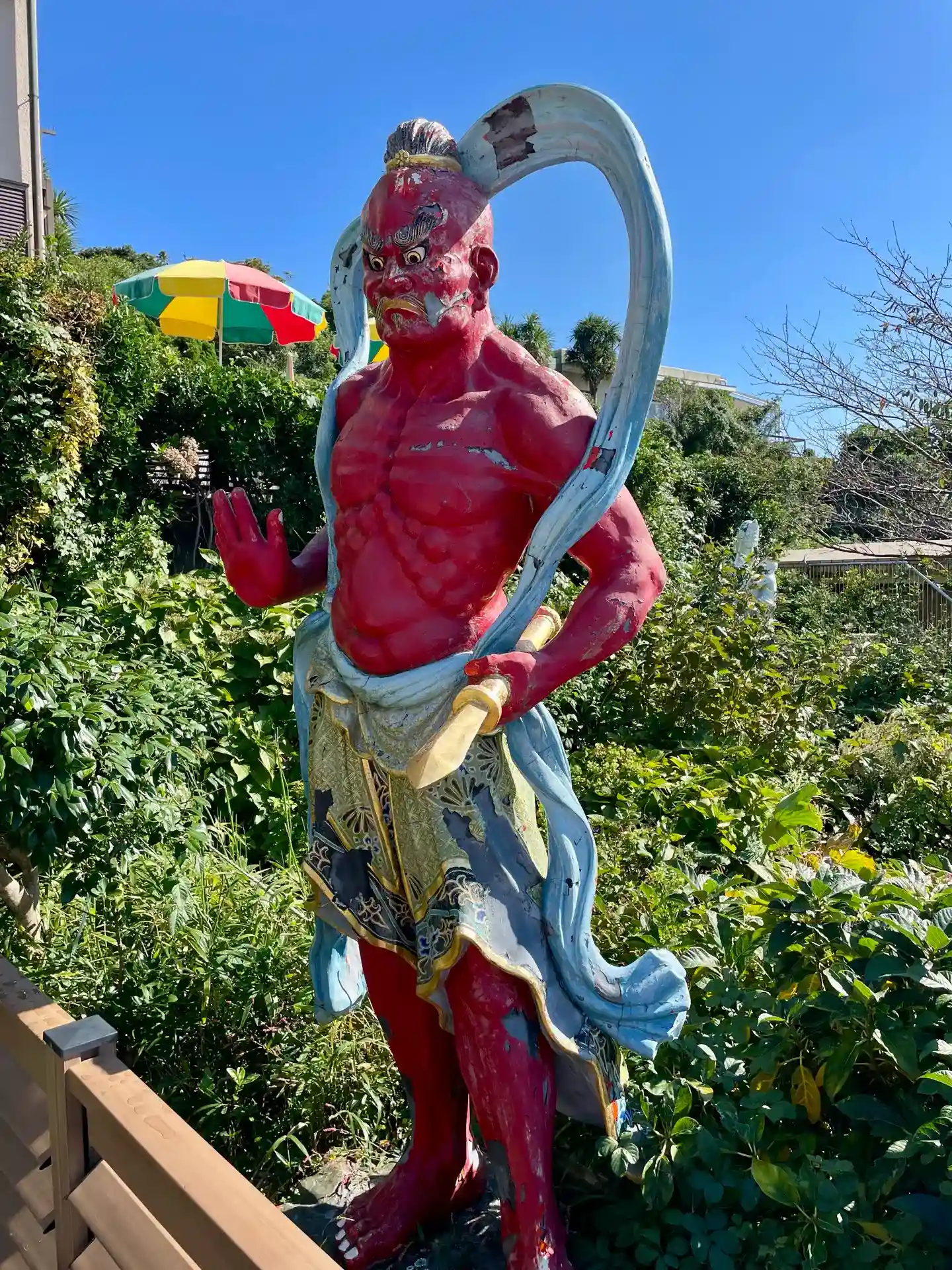 江の島を奥へ奥へと進んでいると、突然 仁王さんから睨まれました!
