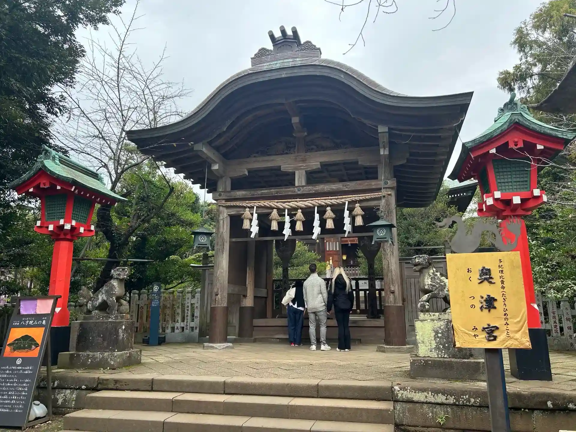 三女神の一柱、田寸津比賣命(たぎつひめのみこと)が祀られている。金運や勝負運、厄除けにご利益があるそう。