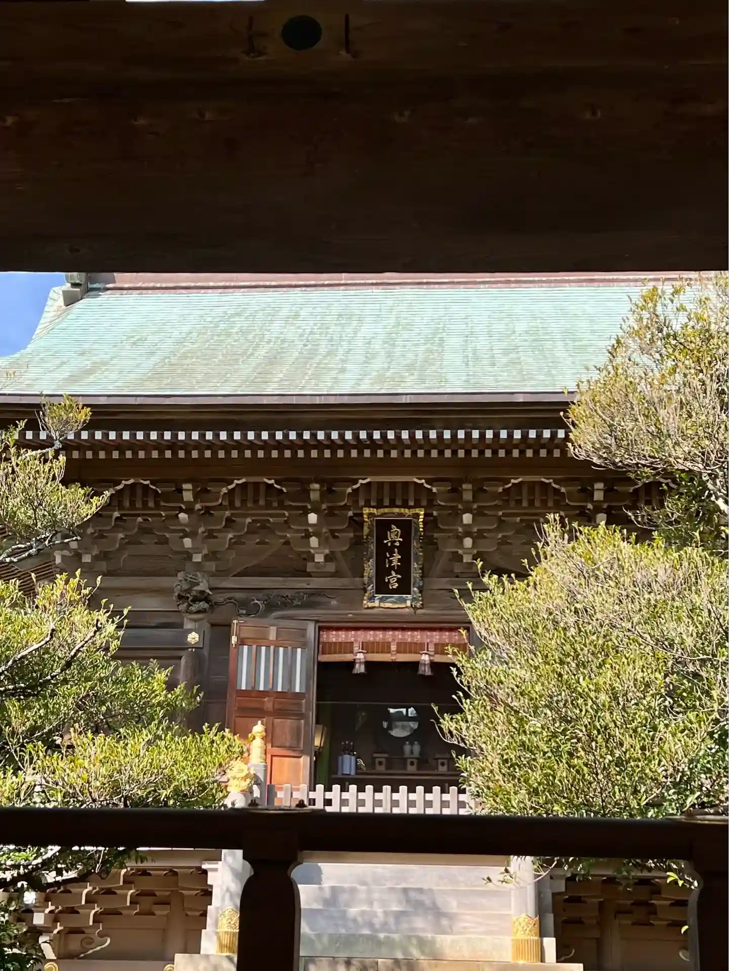 奥津宮の拝殿。この奥に、本殿が。