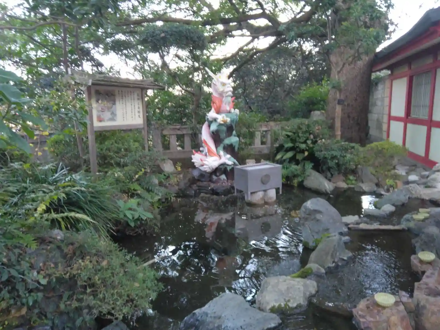 <瑞心門>をくぐったところにある<弁財天童子像>。
