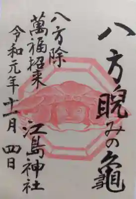 真ん中に邊津宮と書かれ、上部に神紋(向かい波三つ鱗)、真ん中に江島神社の社印が押されています。