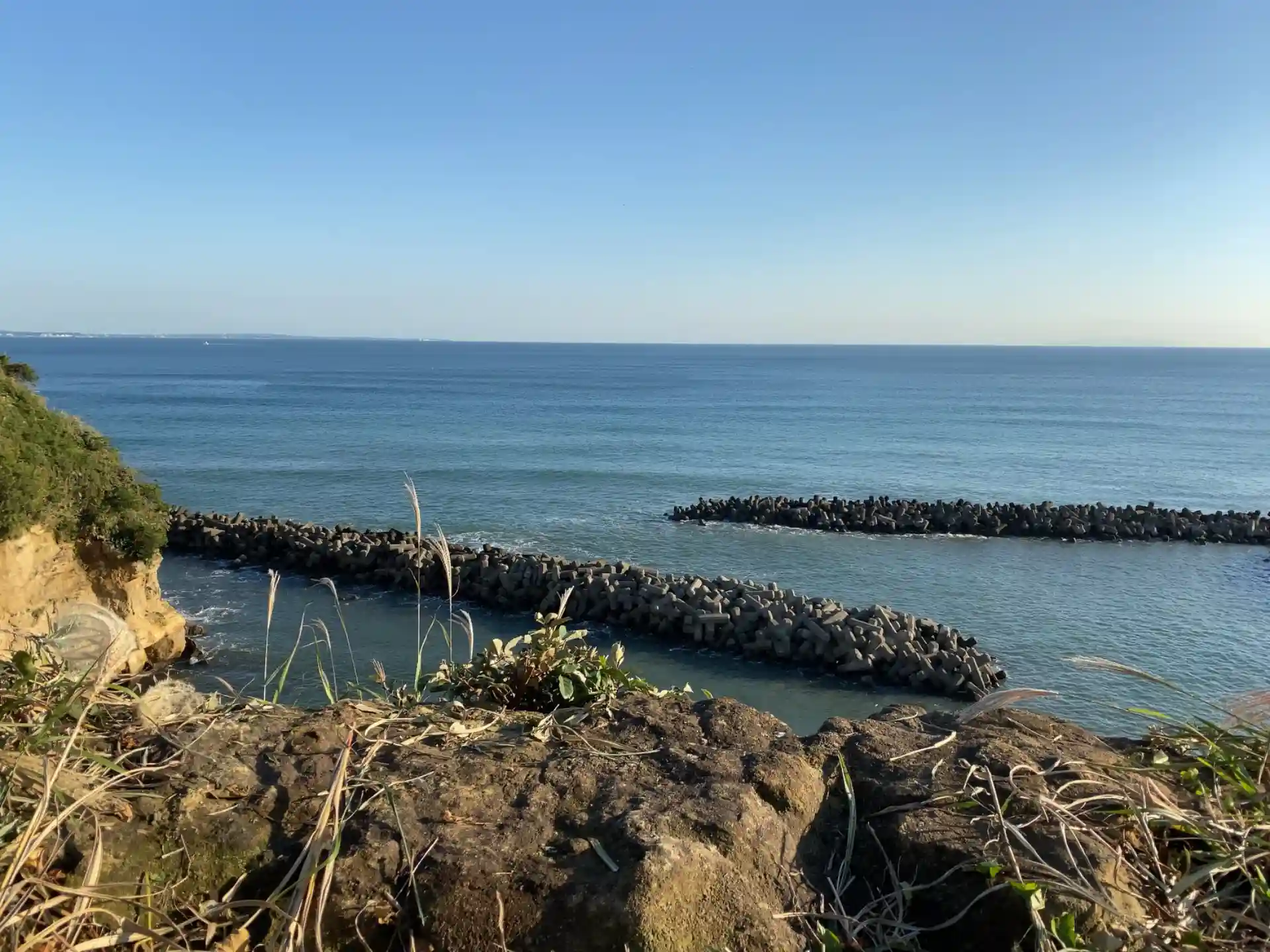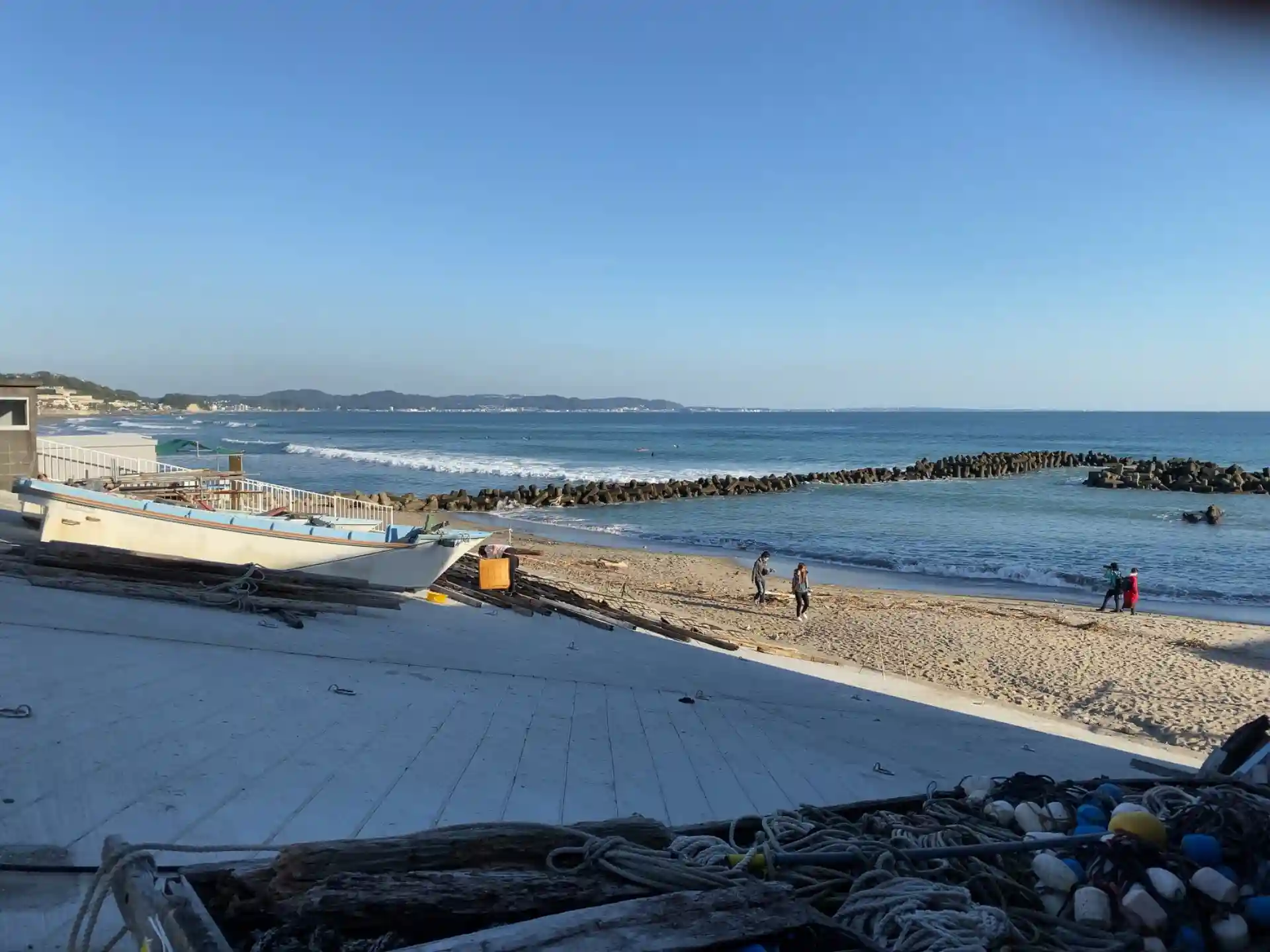 波の向こうは鎌倉、三浦半島方面です。