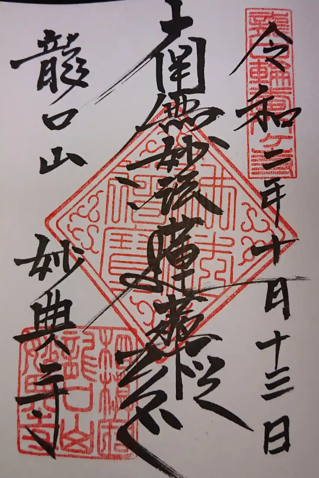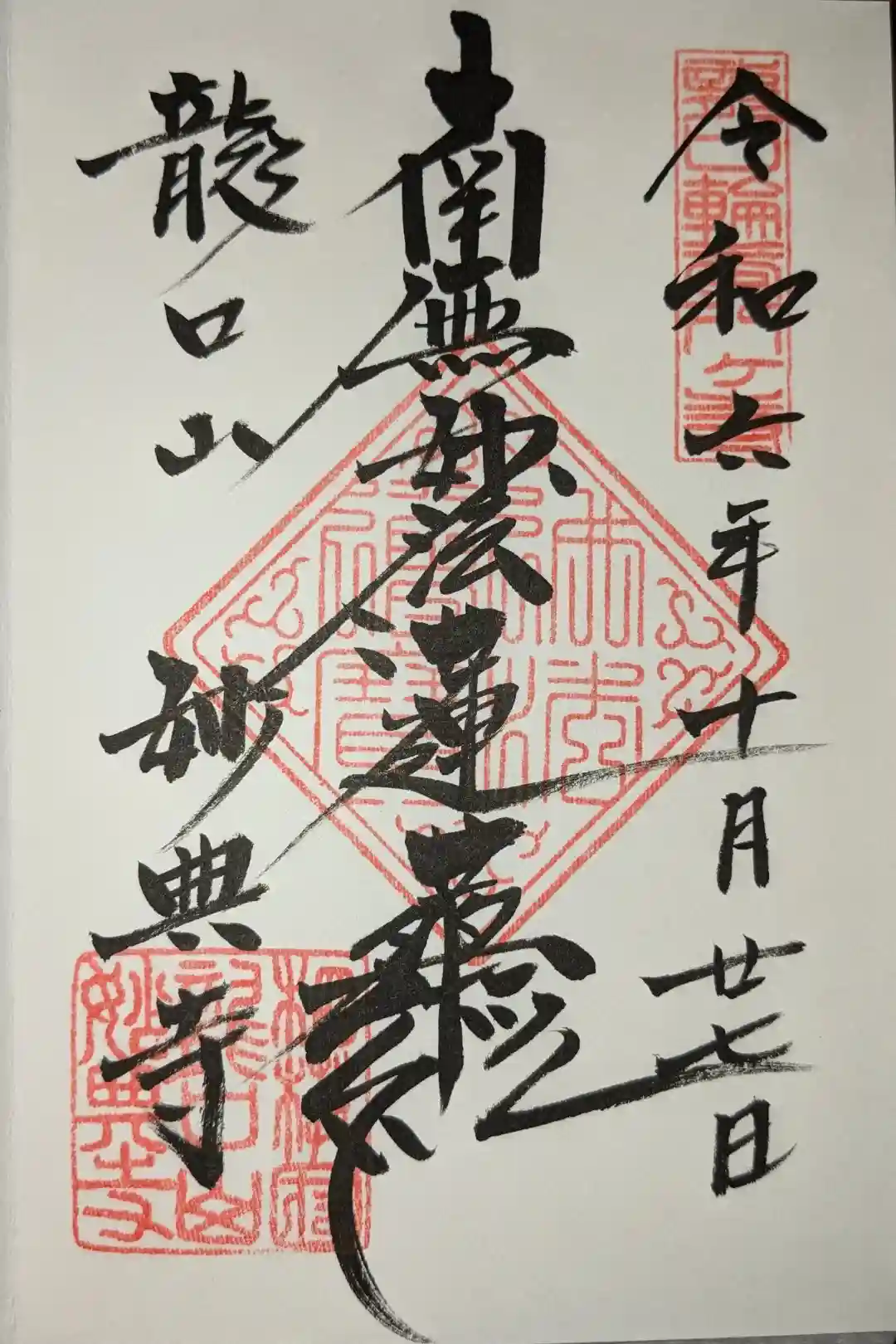 こちらで直書きの御首題を拝受。