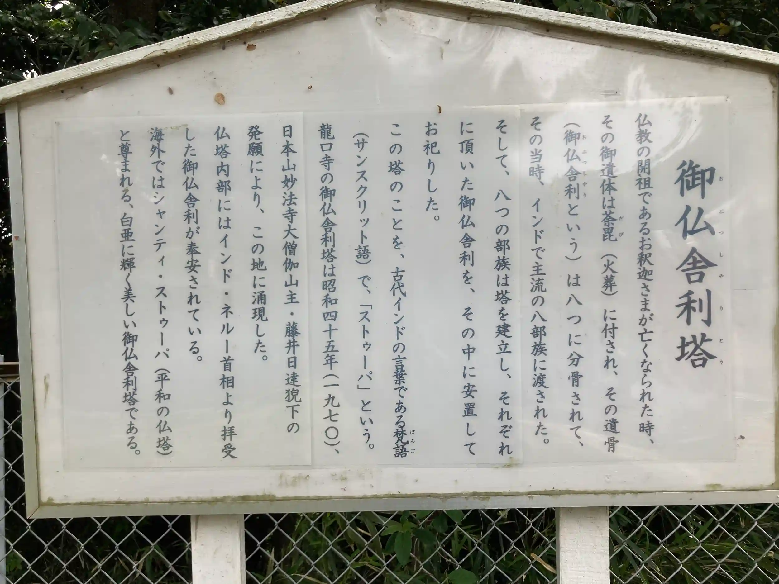 御仏舎利塔、昭和四十五年(1970)建立