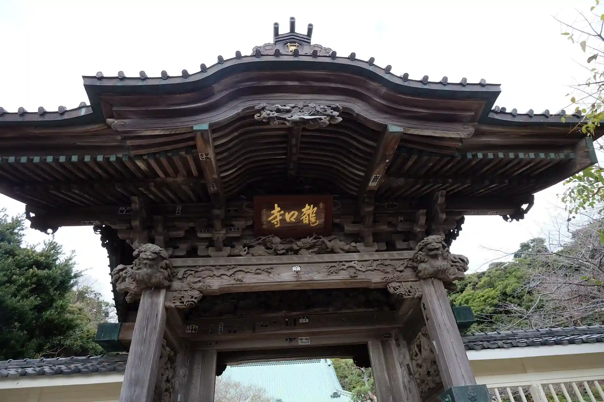 風格が感じられる山門、扁額「龍口寺」の下には龍の彫刻があります!