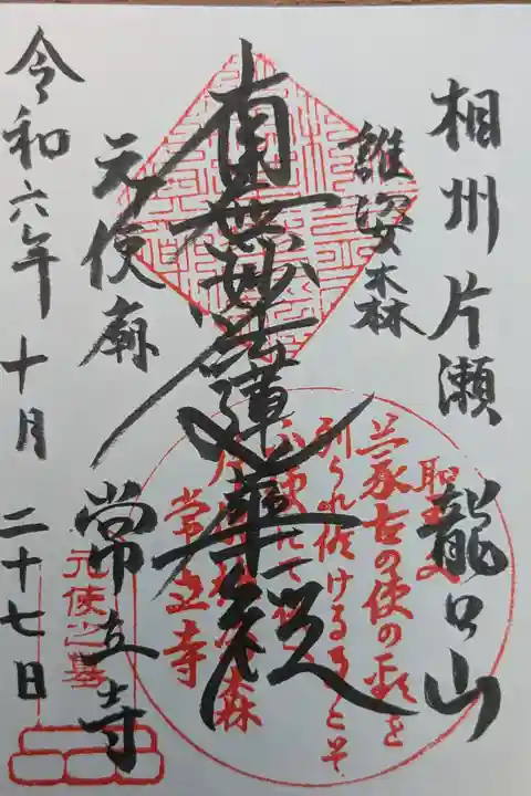 藤沢市片瀬にある日蓮宗のお寺。創建時は真言宗のお寺でしたが後に日蓮宗に改宗した歴史があります。龍口寺の住職が居なかった時代に順番で龍口寺を護っていた龍口寺輪番八ヶ寺の1つ。境内にはとても綺麗なお庭があります。このお寺の境内にあるのが2度目の元寇(弘安の役)が起こる前に来日し処刑された元からの使者を供養する元使塚。