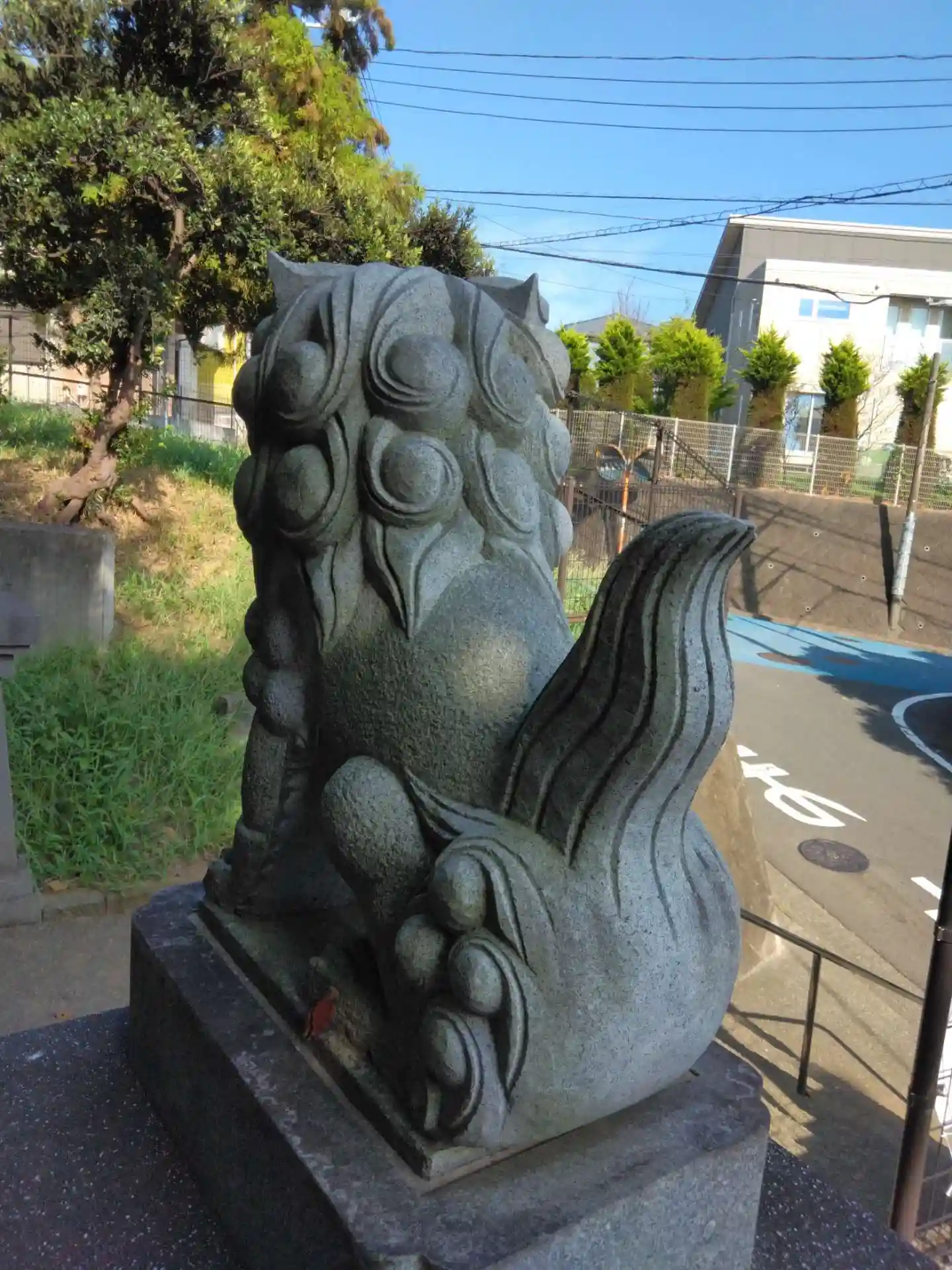 拝殿前にありましたが、いつしかどこかへ。狛犬の盗難防止ということもあるかもしれません。