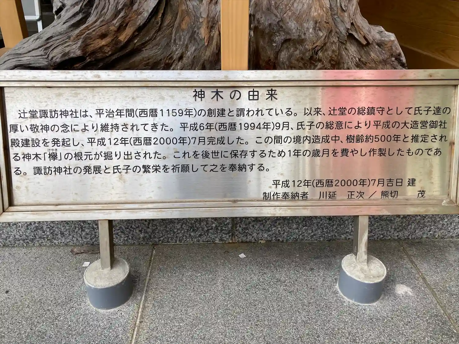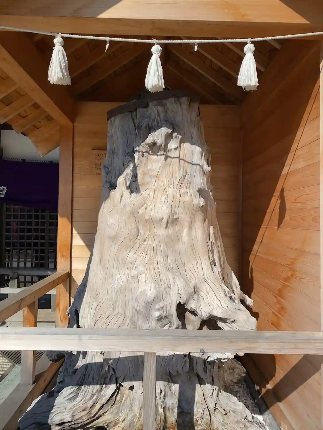 本殿の横にかつての御神木が飾られています。