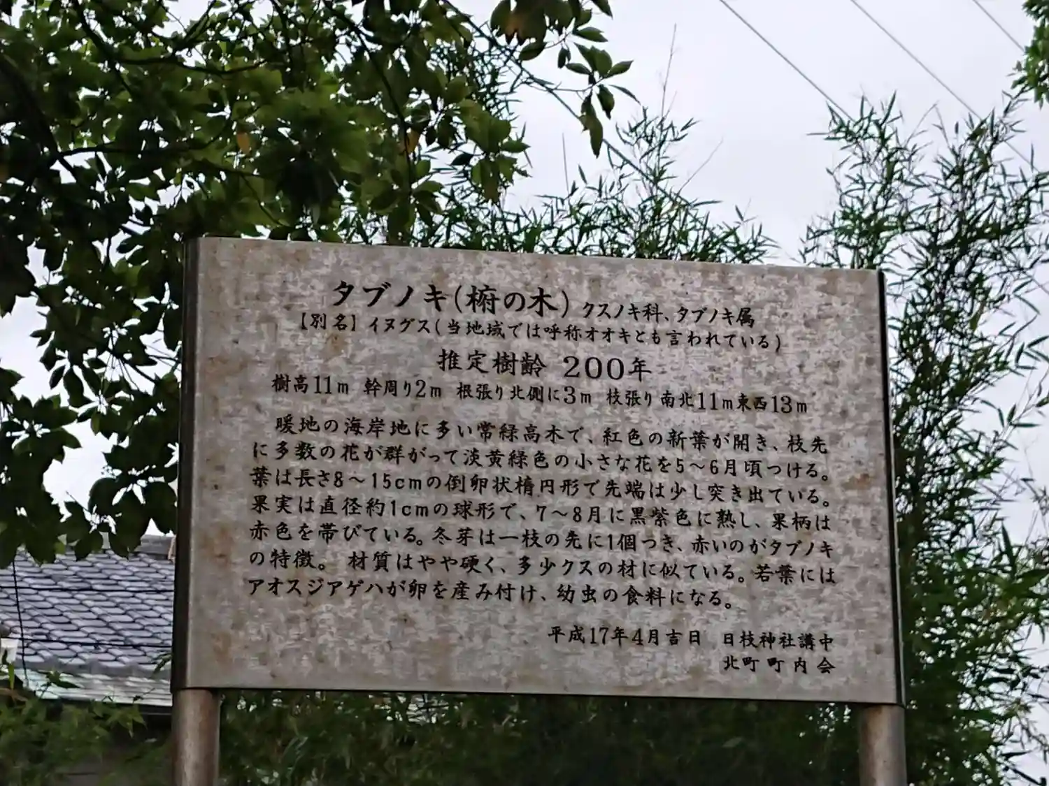 無人の神社です。立派な鳥居がありました。横には大きなタブの木が存在感たっぷりにそびえていました。