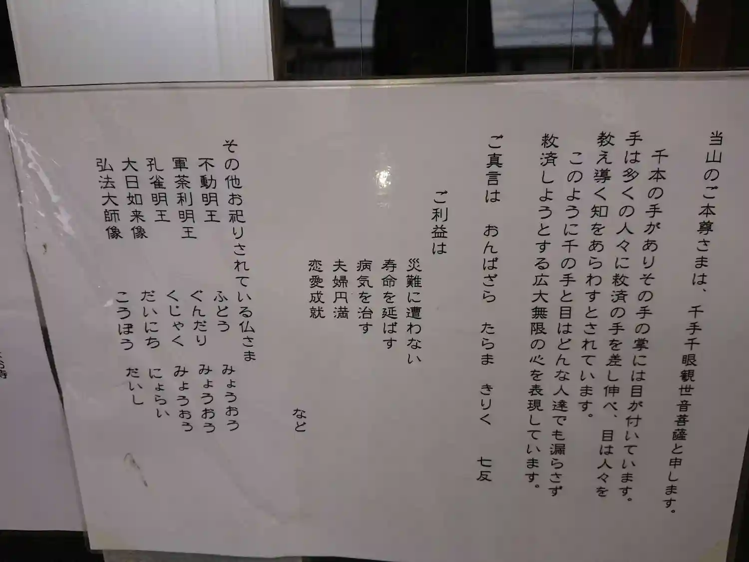 | ご本尊 | 千手千眼観世音菩薩 | |