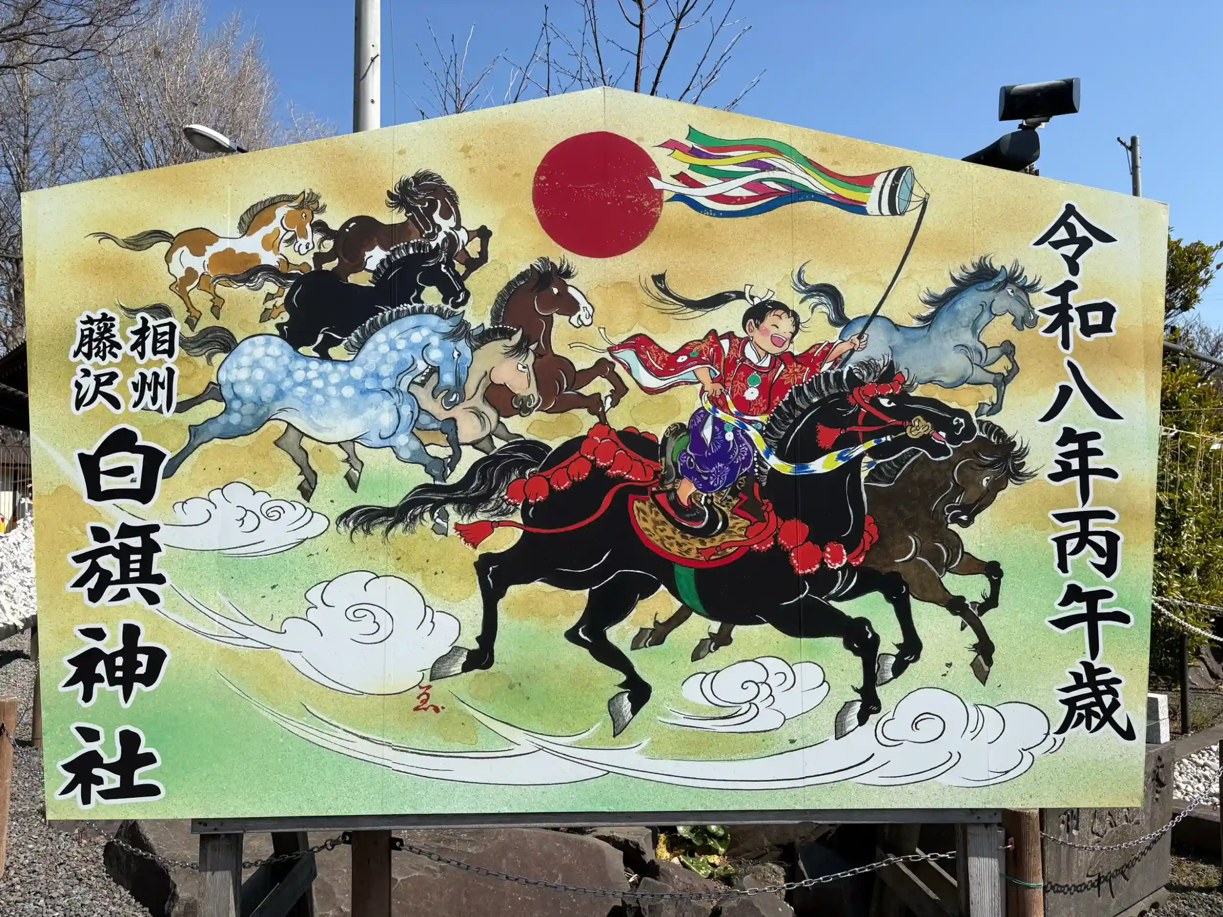 午年の大絵馬 干支の他の大絵馬は境内の外に飾ってありました 写真は↓に