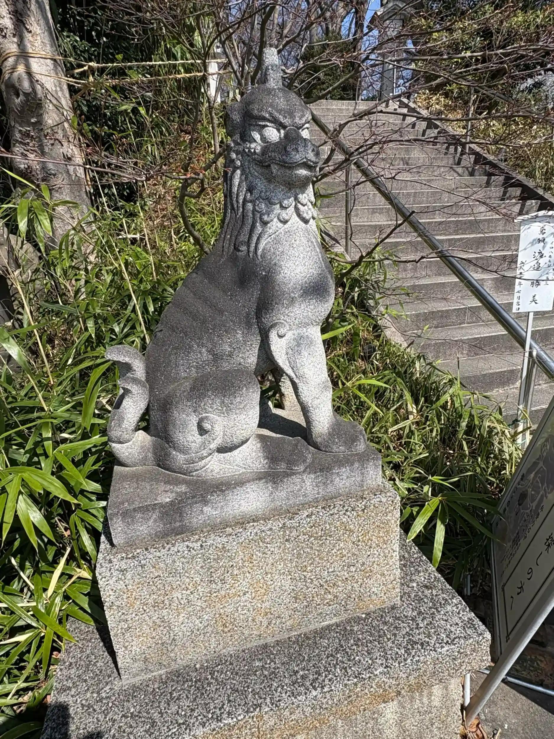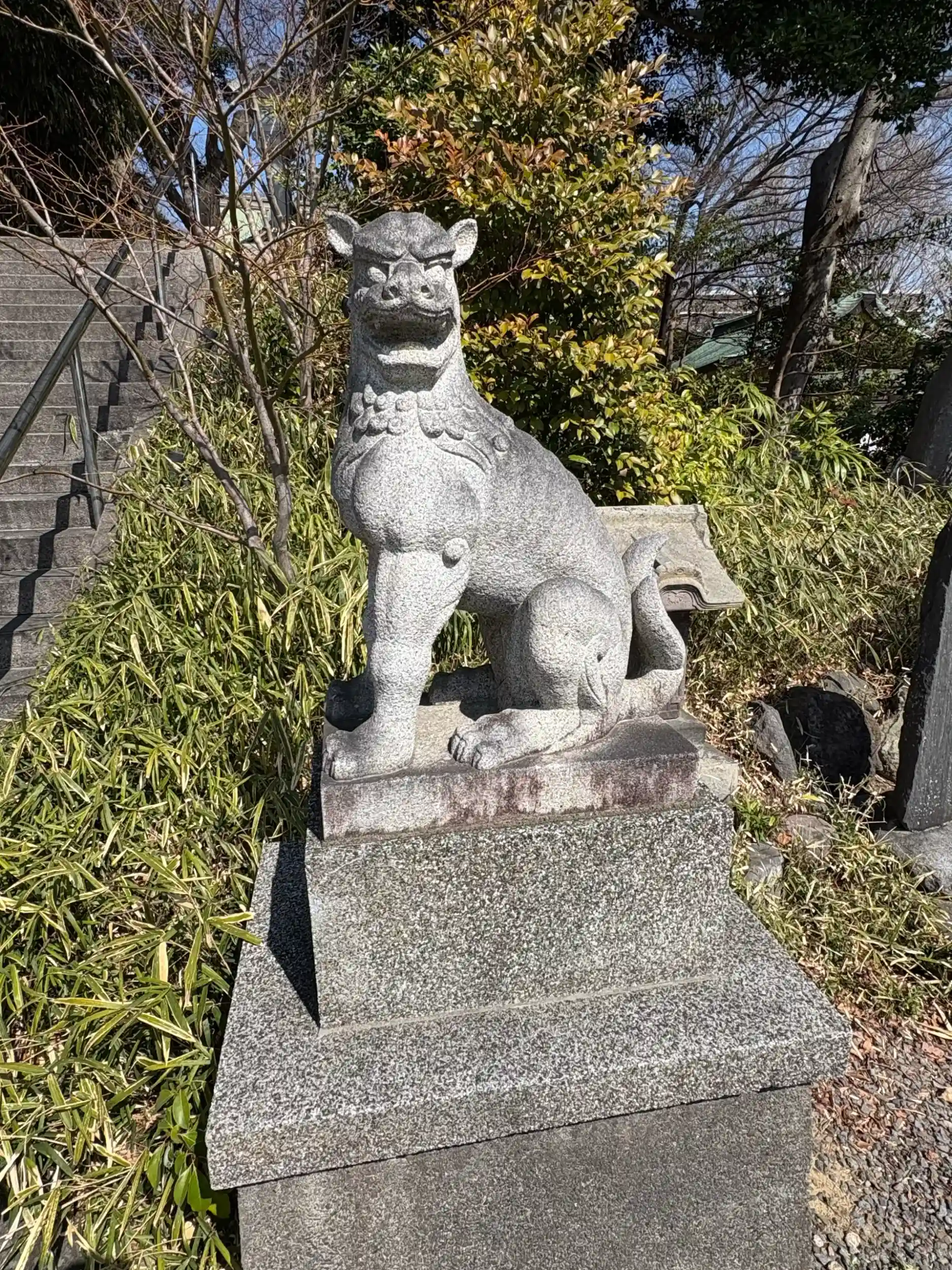 鳥居と同じ段の狛犬 この後石段を上がります