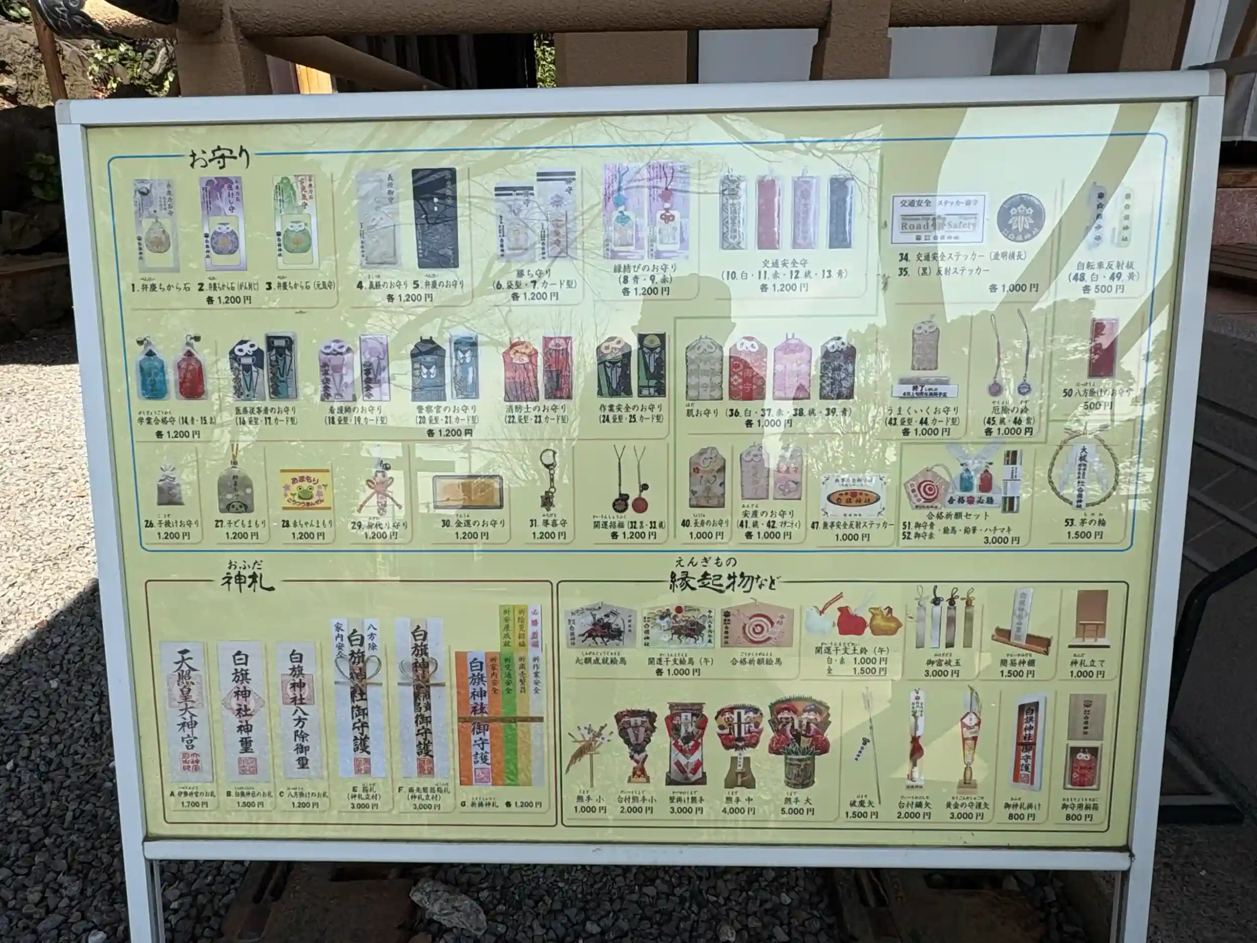 社務所前の授与品見本
