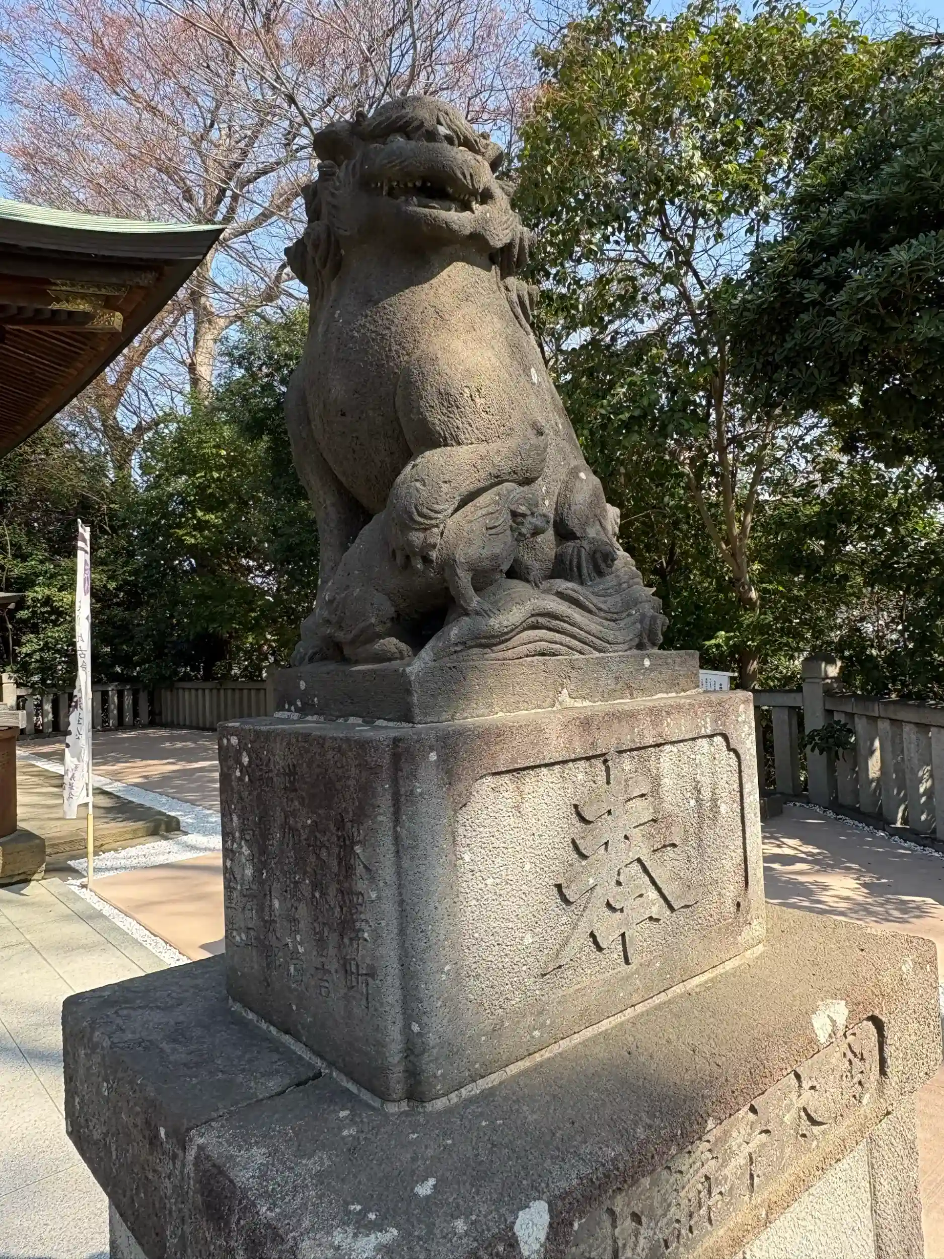拝殿と同じ段の狛犬