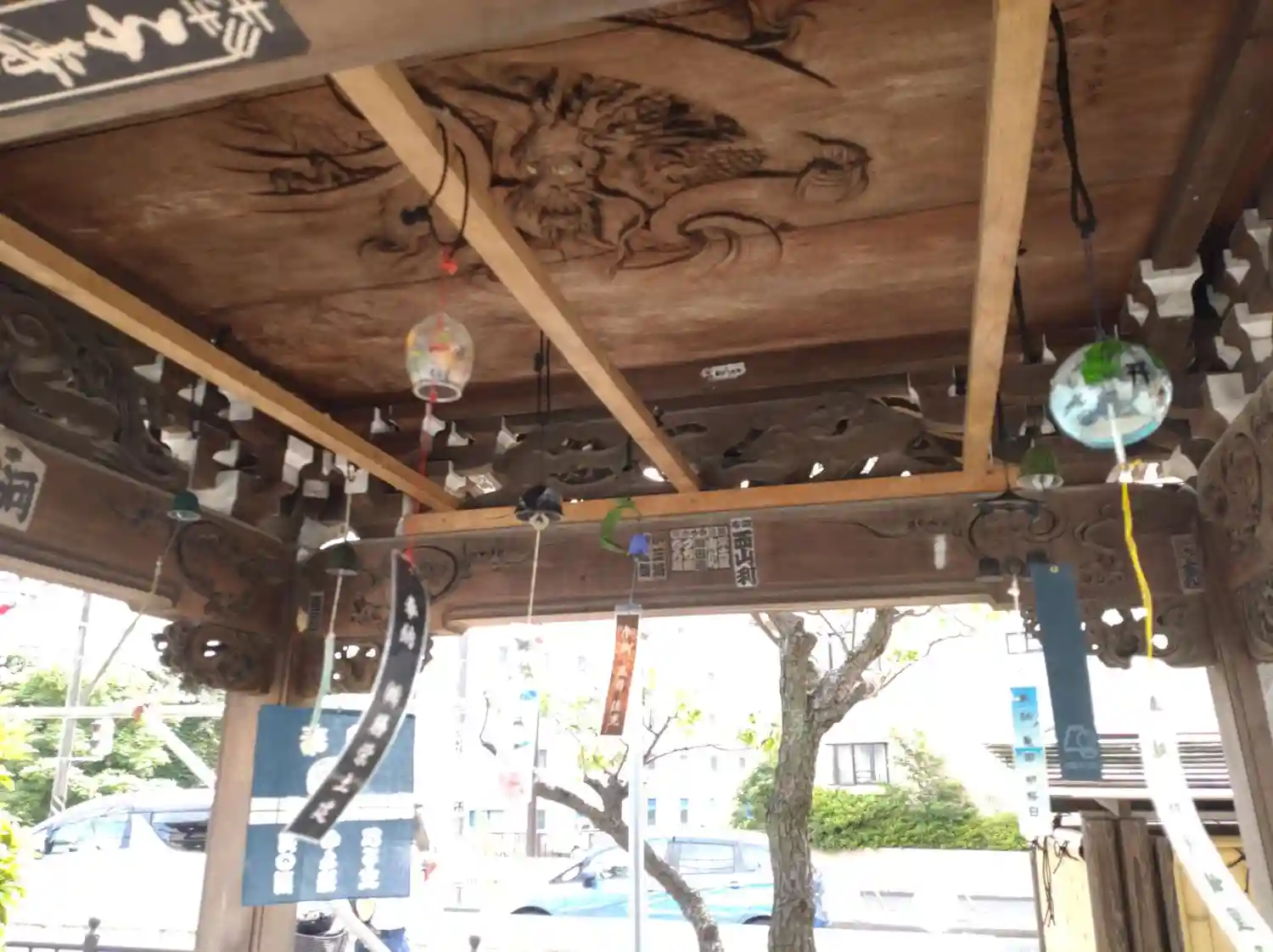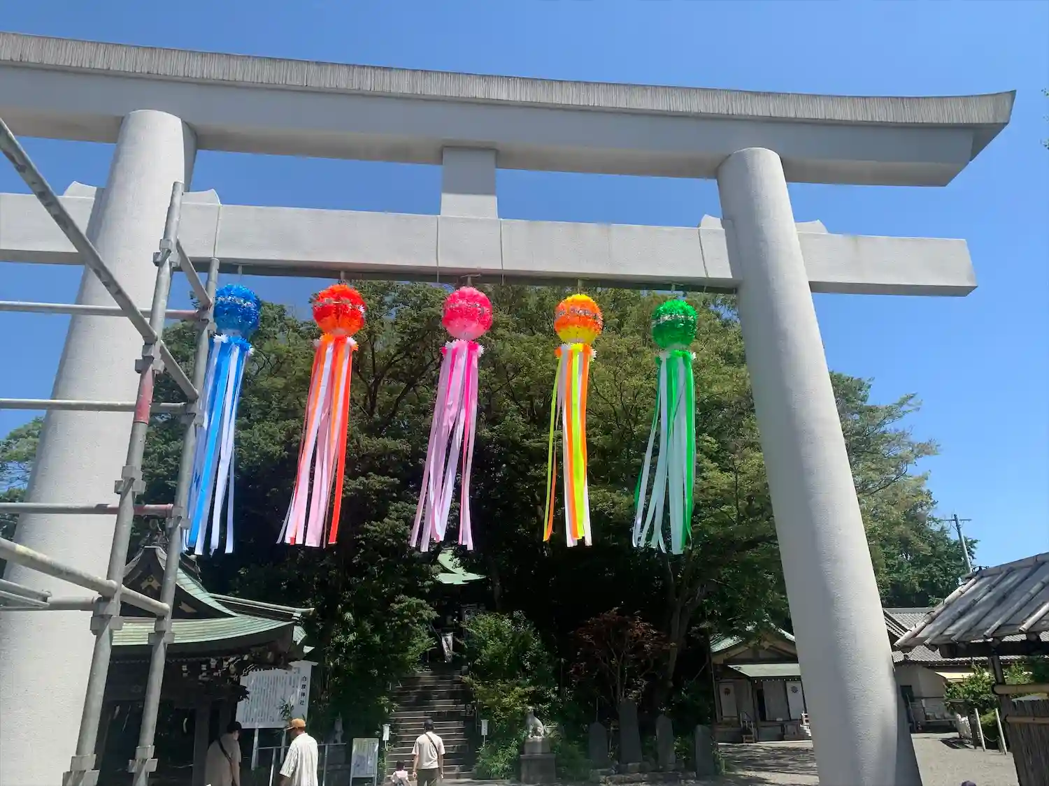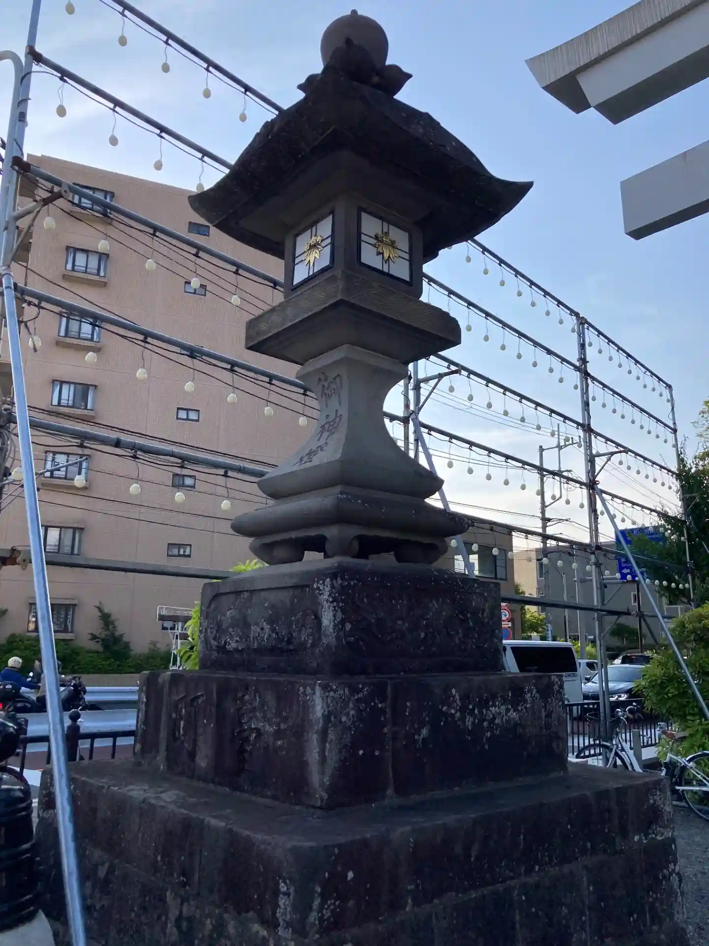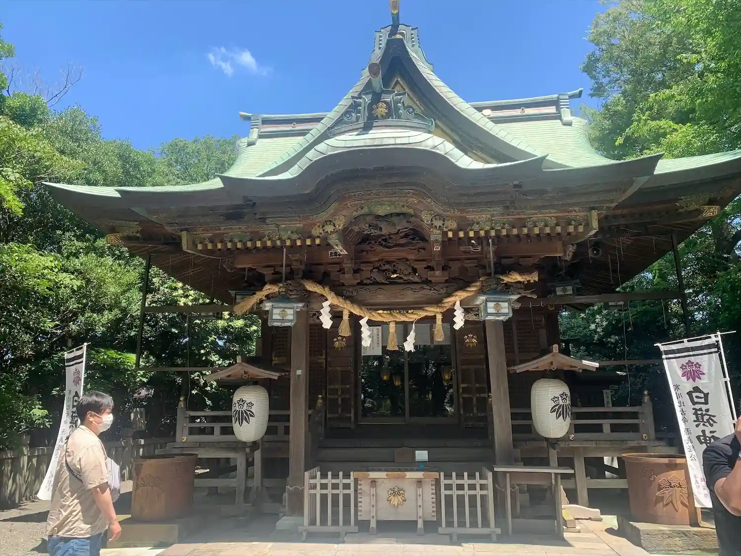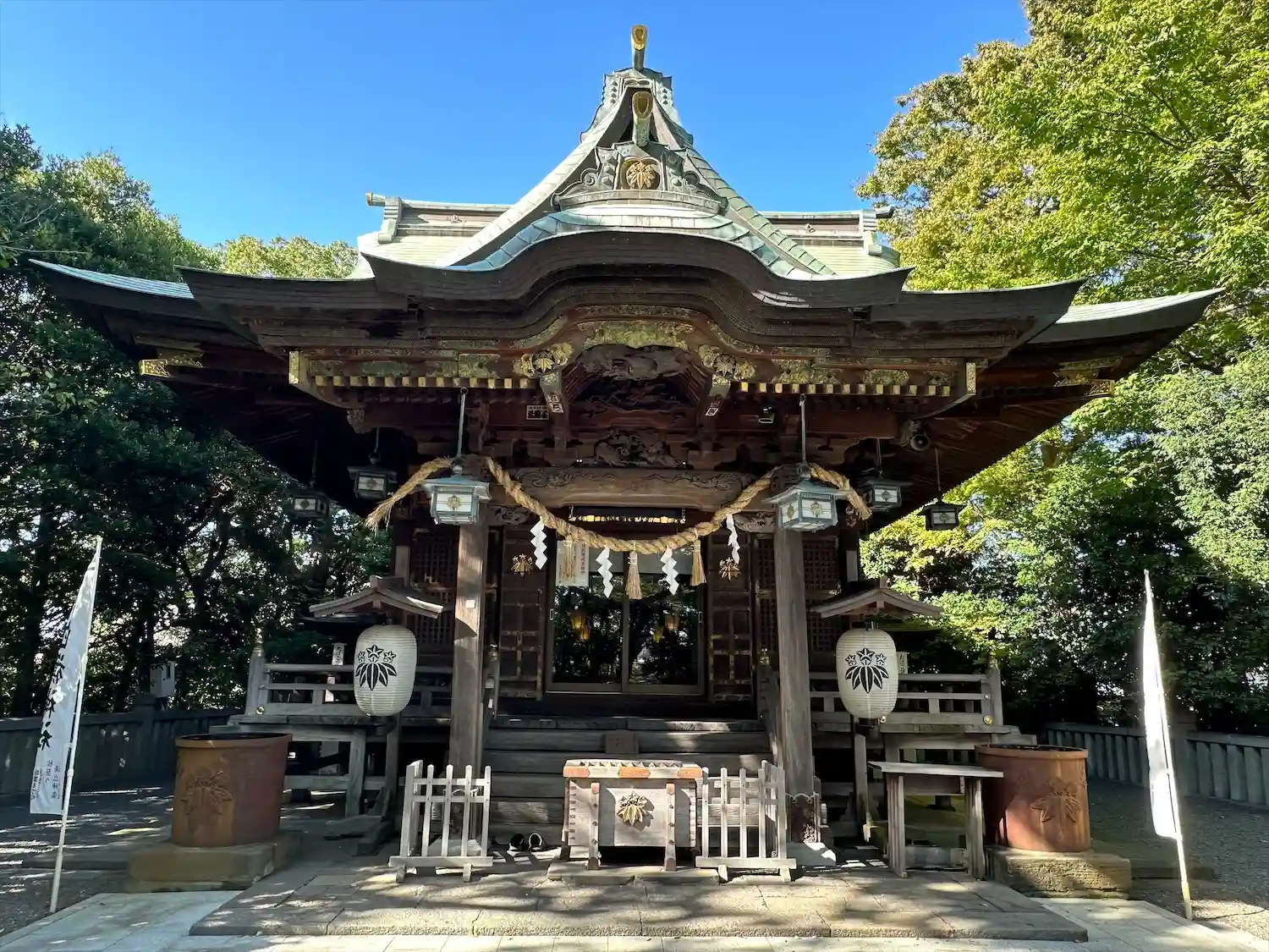 お祭りも近いみたいでして、提灯が飾られていましたね。幟もたくさん出ていたので、お祭りの際には賑わう…