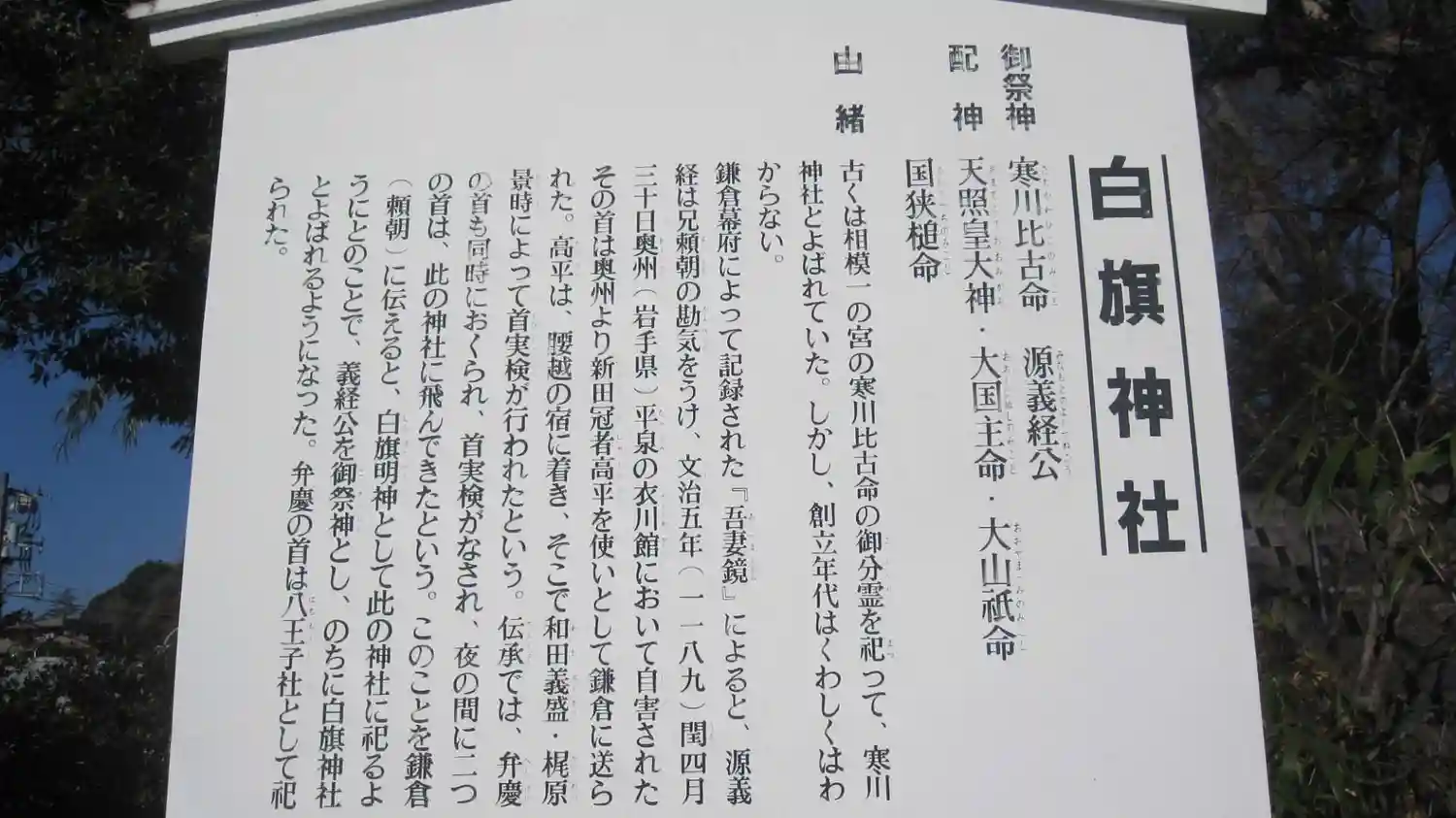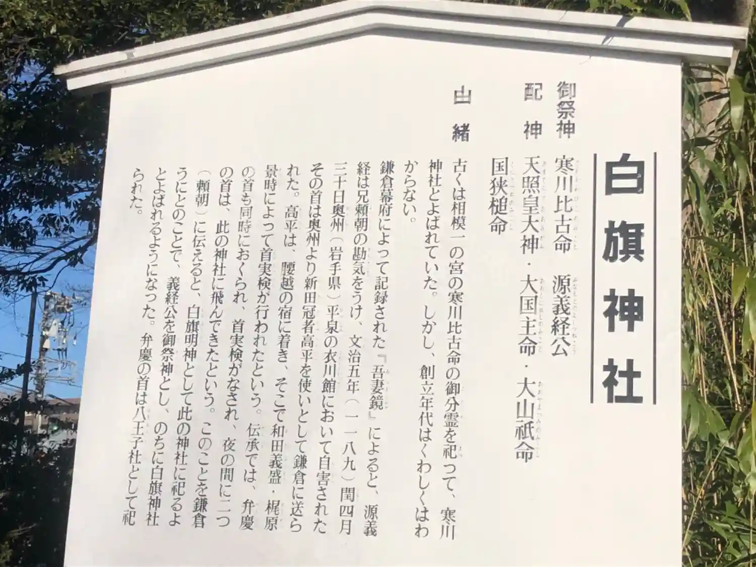 神奈川県藤沢市の白旗神社は、祭神として源義経を祀っています。奥州・平泉で自害した義経の首は鎌倉に…