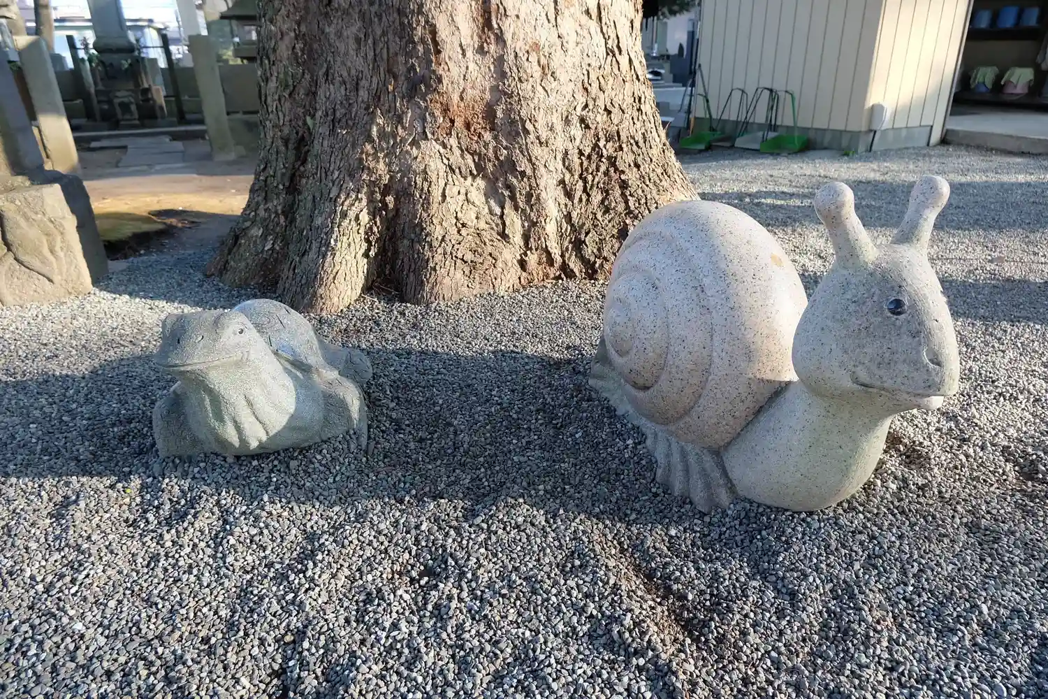 カエル、カタツムリ、ブタの石像も魅力的でした。