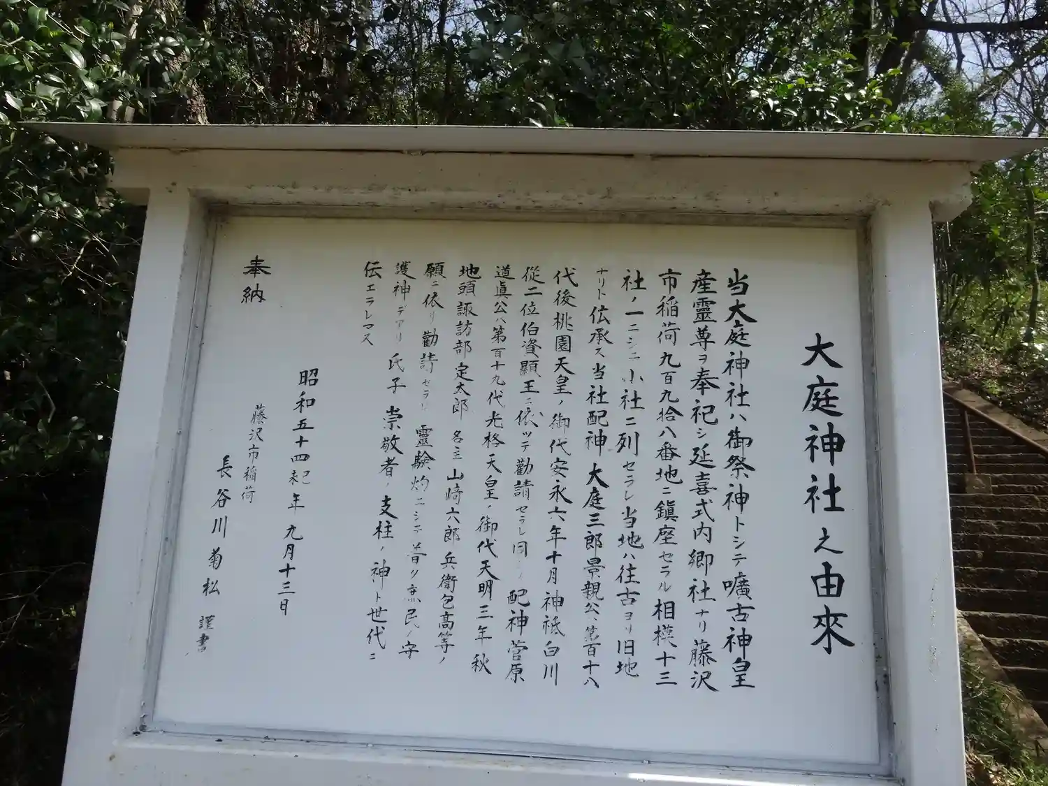 大庭神社〜鳥居と社号標と由来の看板