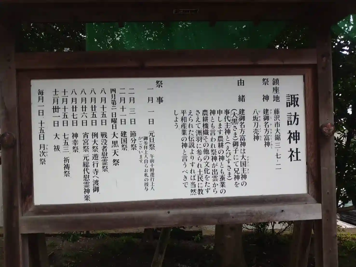 建御名方冨神と八坂刀売神が御祭神である。
