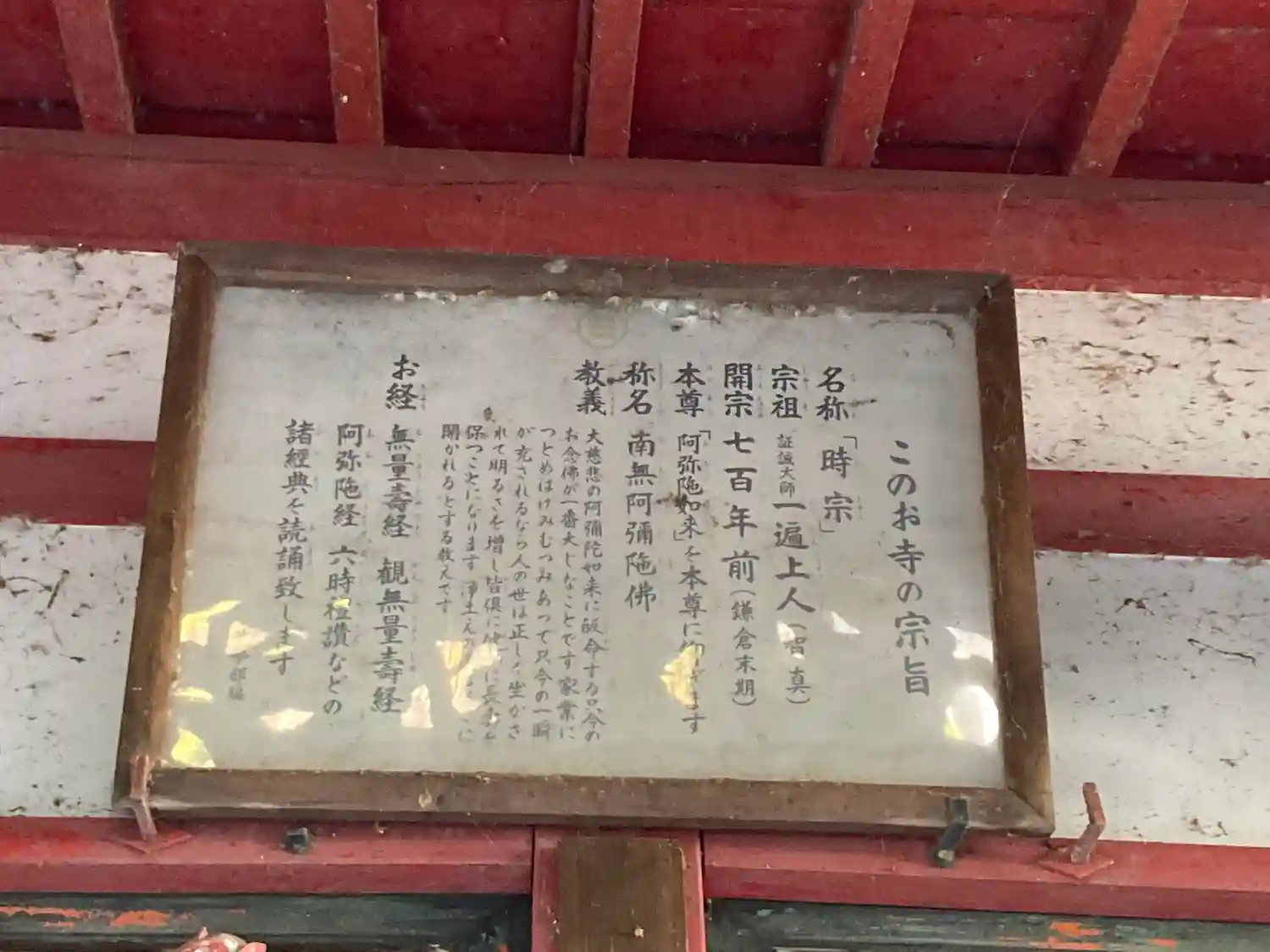 08-3) 本堂正面情報に掲げられた、” このお寺の宗旨 ” 。