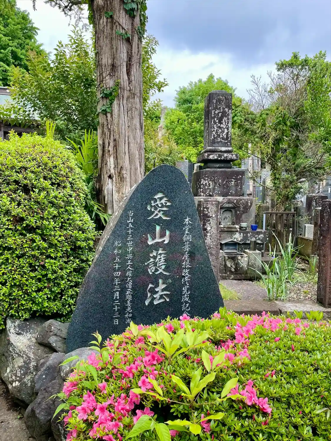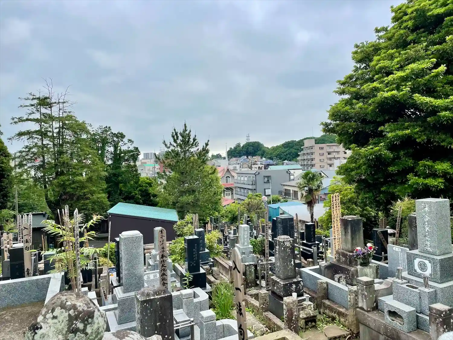 特に向かって左側の墓地は本堂前での印象に比して思いのほか広い。