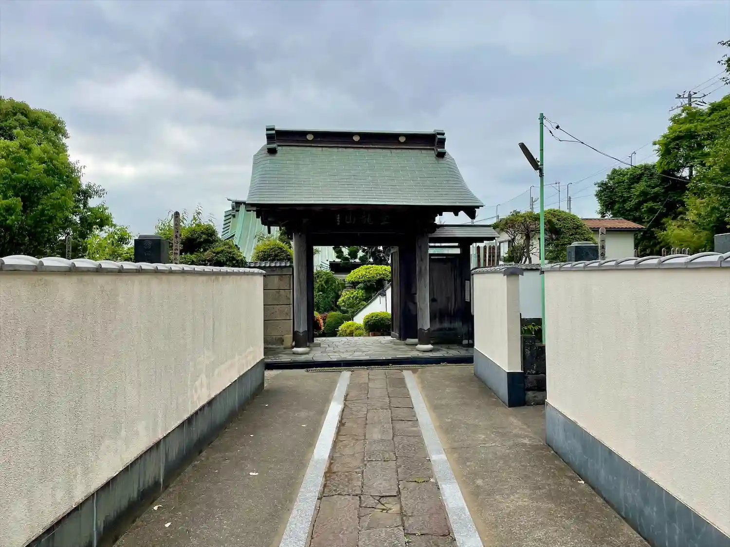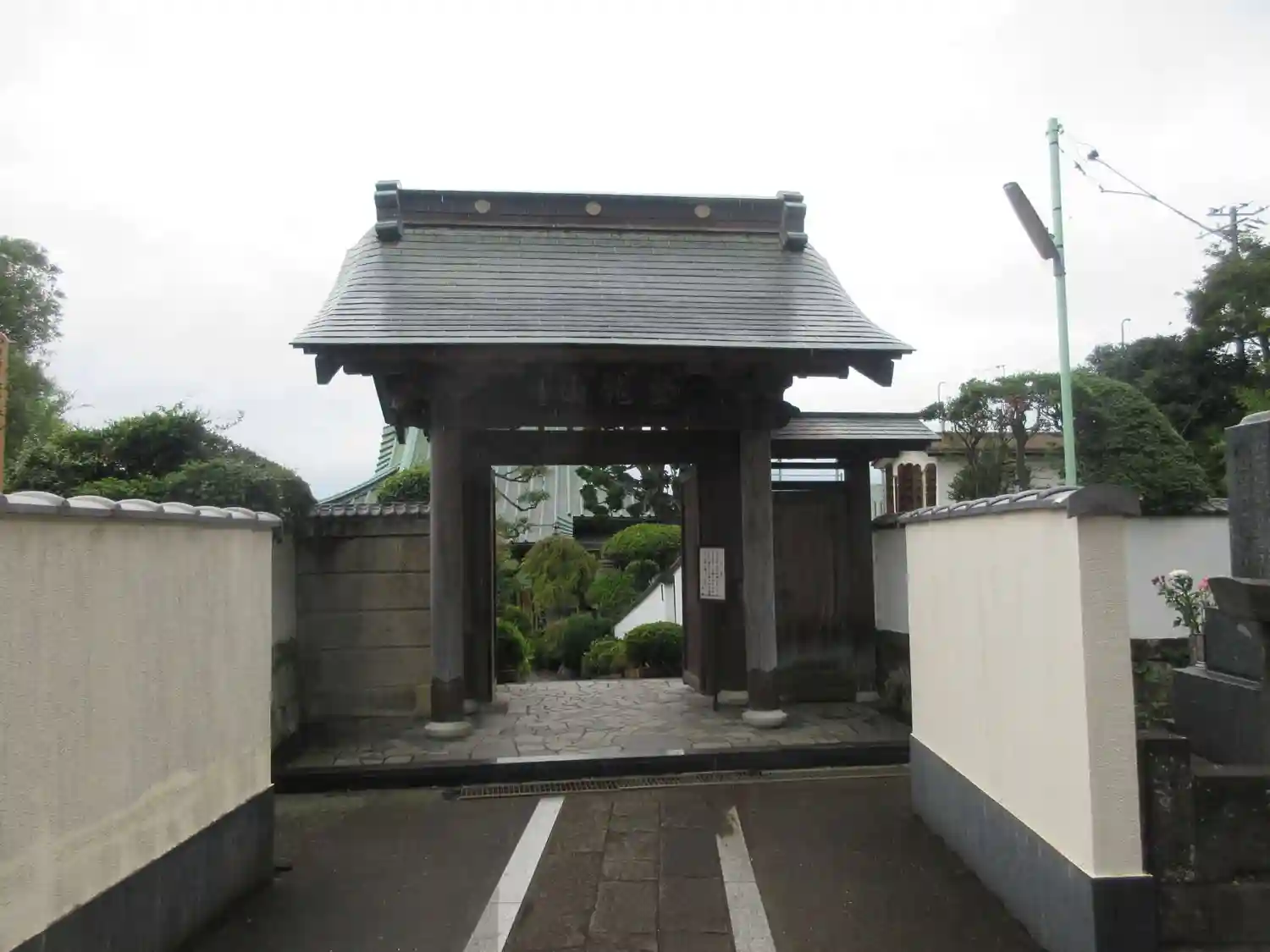 03) 参道。 塀の内側は墓地。
