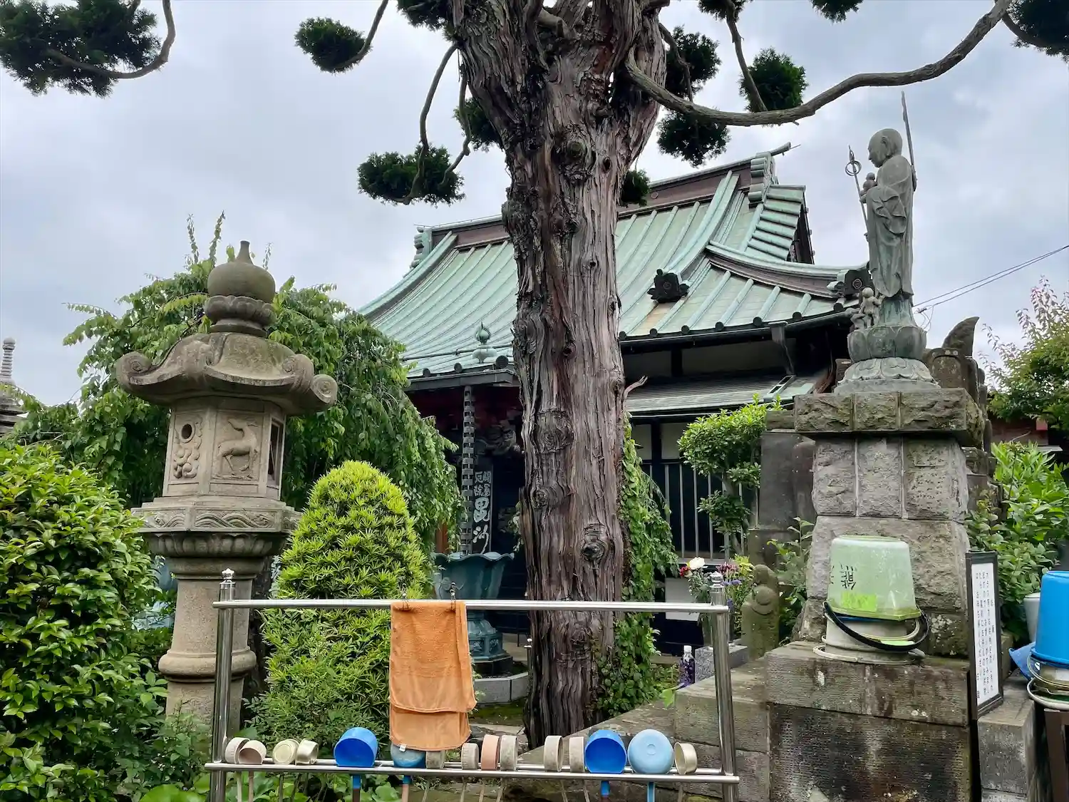 10) 本堂に向かって右側で、水子地蔵の青銅像。