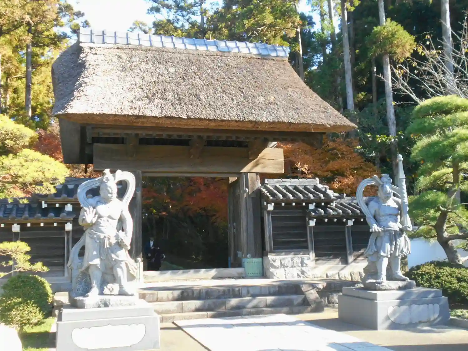 仁王像、茅葺きの ’ 山門 ’ 方向の遠景 _ 藤沢市渡内(わたうち)