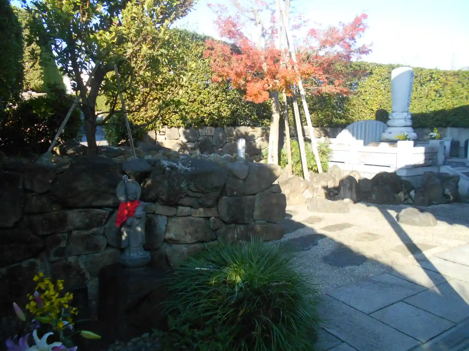 右奥は、歴代住職の墓所。左方と奥は、広大な墓苑。
