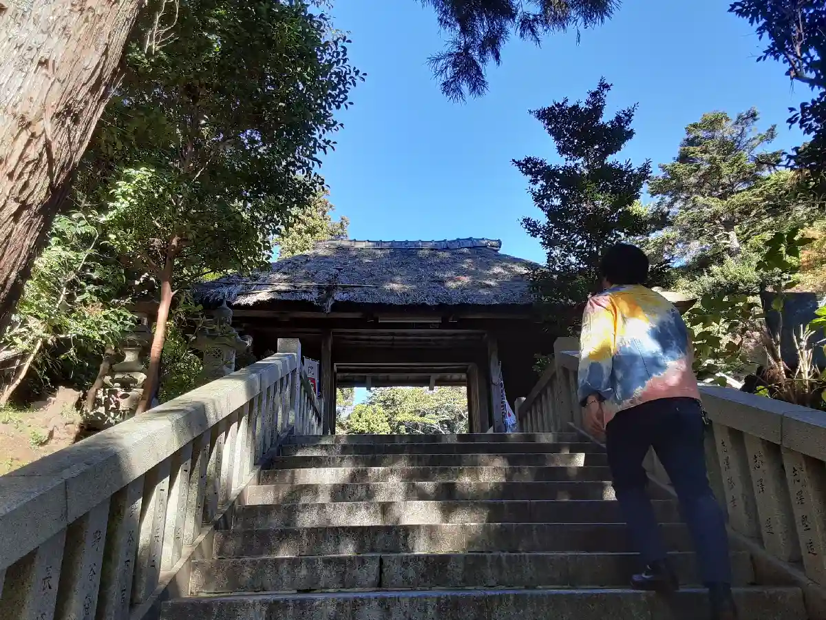 まず目に付くのが、茅葺き屋根の神門。国道から少し奥まった場所に鎮座。北条家由来の神社。相模の国の二…