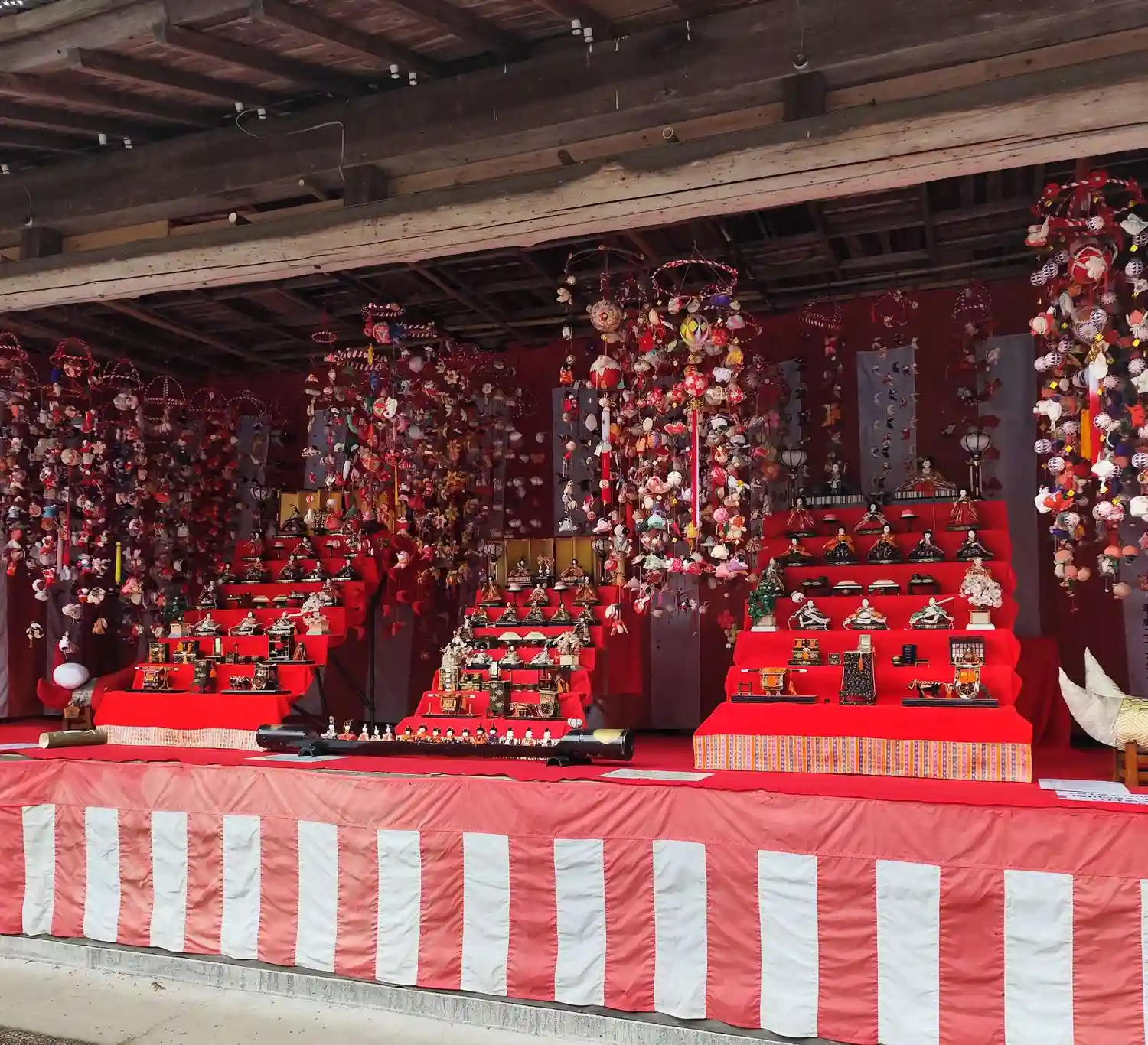 雛壇に乗ってない雛人形は地元の方が処分に困って持ち込まれたものを展示していました。魂の入っているかの様な立派な人形ですが展示が終わるとお焚き上げされるそうです。悲しい(◞‸◟)