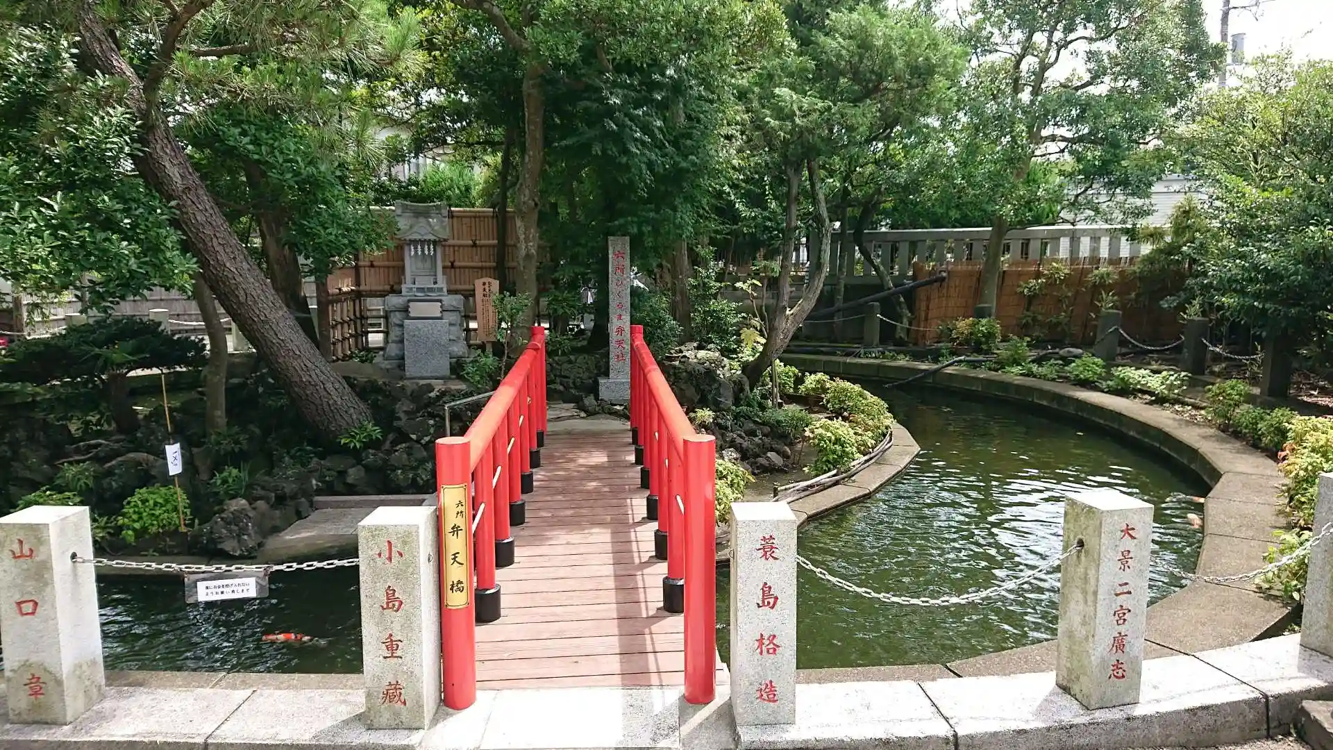 境内には茶店風に傘と緋毛せん。お茶会が出来そうな雰囲気を醸し出していた。鳥居は国道1号線に面しており、境内から離れている。神池は井戸の水を利用しており、竜神様が祀られいました。御朱印は丁寧に手書きで戴きました。