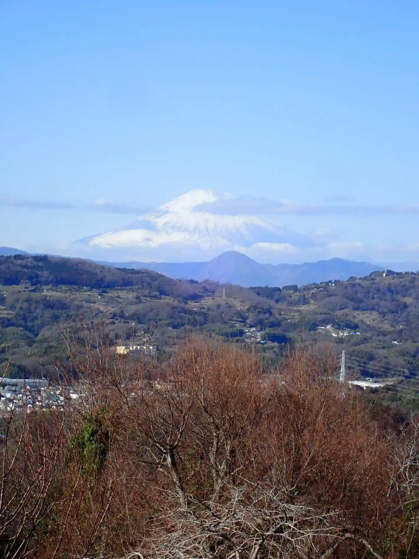 山頂に立つと雪を被った富士山が