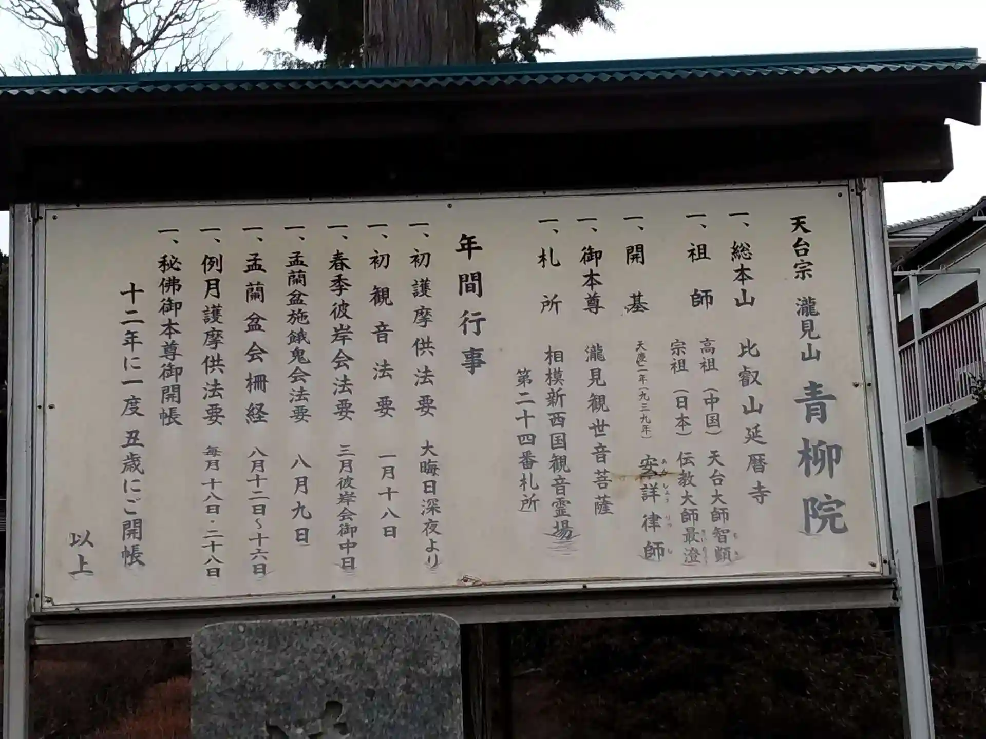 相模新四国三十三観音霊場第24番札所の天台宗寺院。ご本尊は滝見観世音菩薩です。