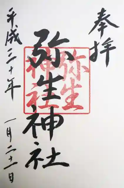 今回書き上げた祝詞は弥生神社さんへ納めさせて頂きました。
