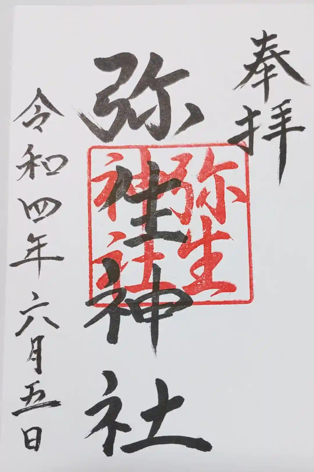 弥生神社の御朱印