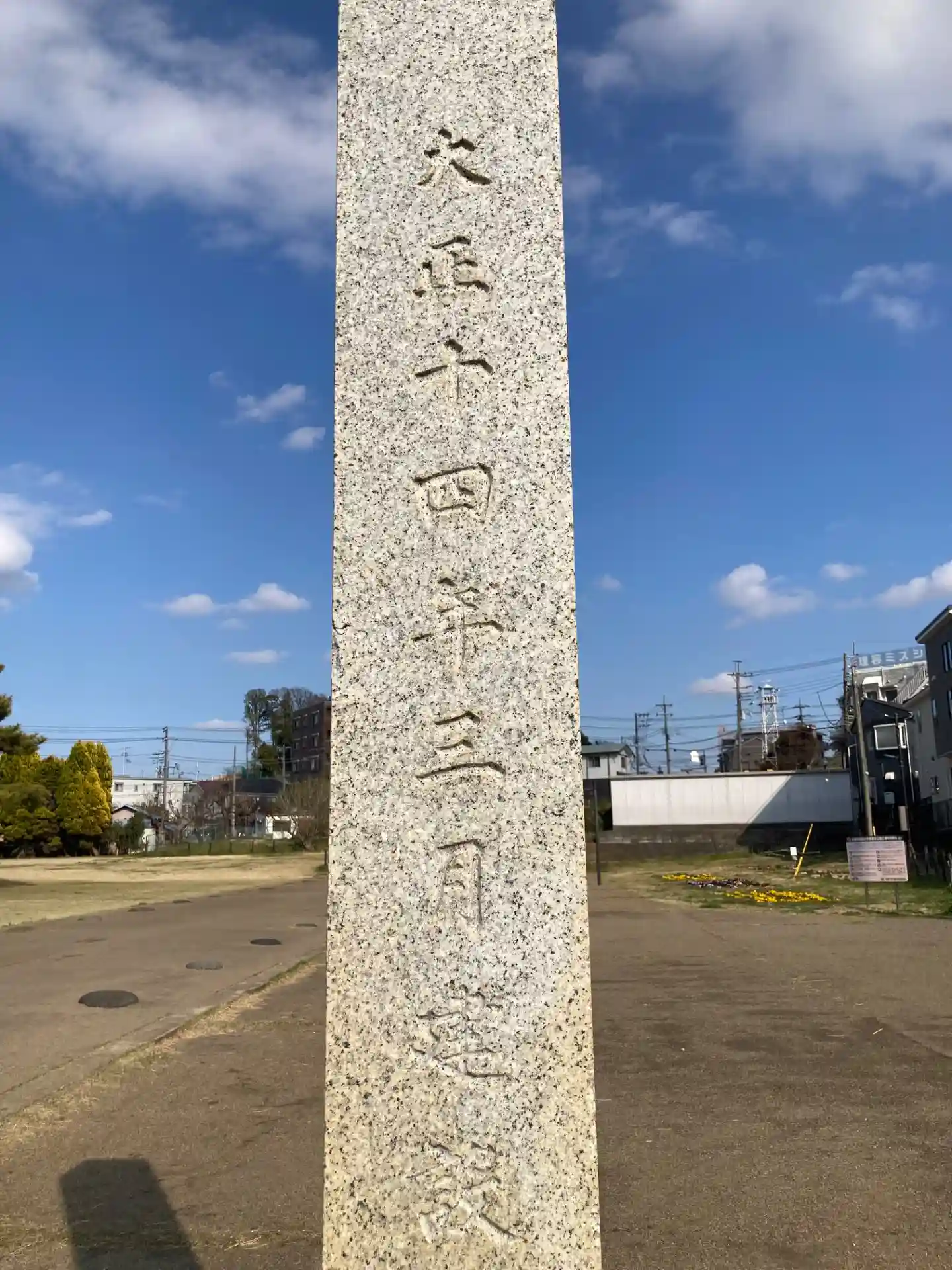 公園の一角に七重塔のモニュメント